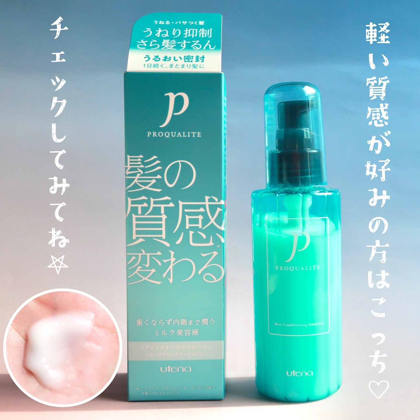 カラーを繰り返した髪も「美しい髪色・ツヤ」をキープ✨️ 髪の質感*変わる!うねり・広がりを抑えて素直にまとまる髪へ導く、アウトバスで使うミルクタイプのヘア美容液だよ🙆♀️💓 ミルク状エッセンスが髪の内側まで潤いを補給し、うねり・ごわつきの原因となるダメージを補修✨️ 重たくならずに潤い感もあってサラサラでなめらかに仕上がる🌸 私はブリーチもカラーもしてるからかなりダメージ気になるんだけど、しっとりまとまりヘアーを楽しめてるよ✨️