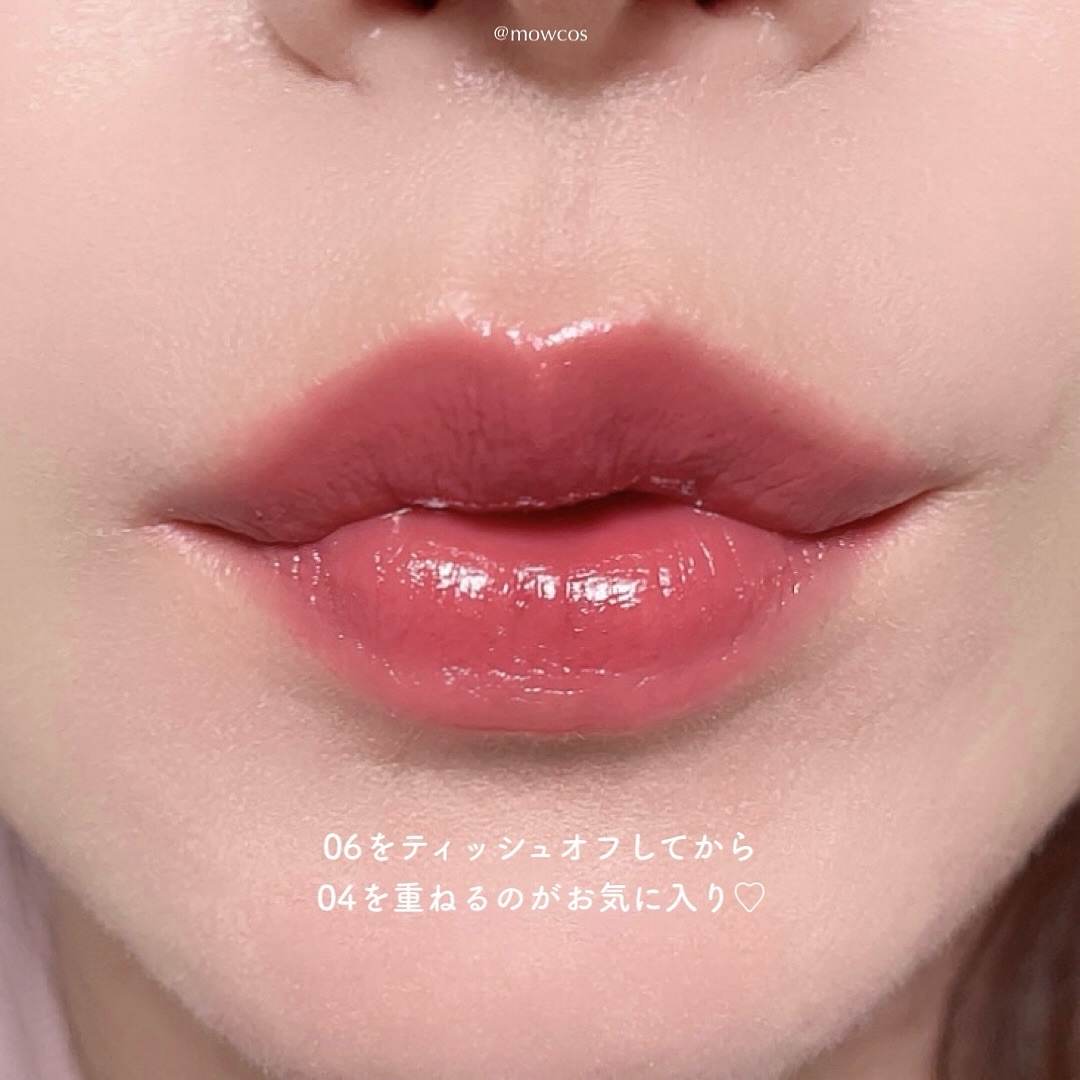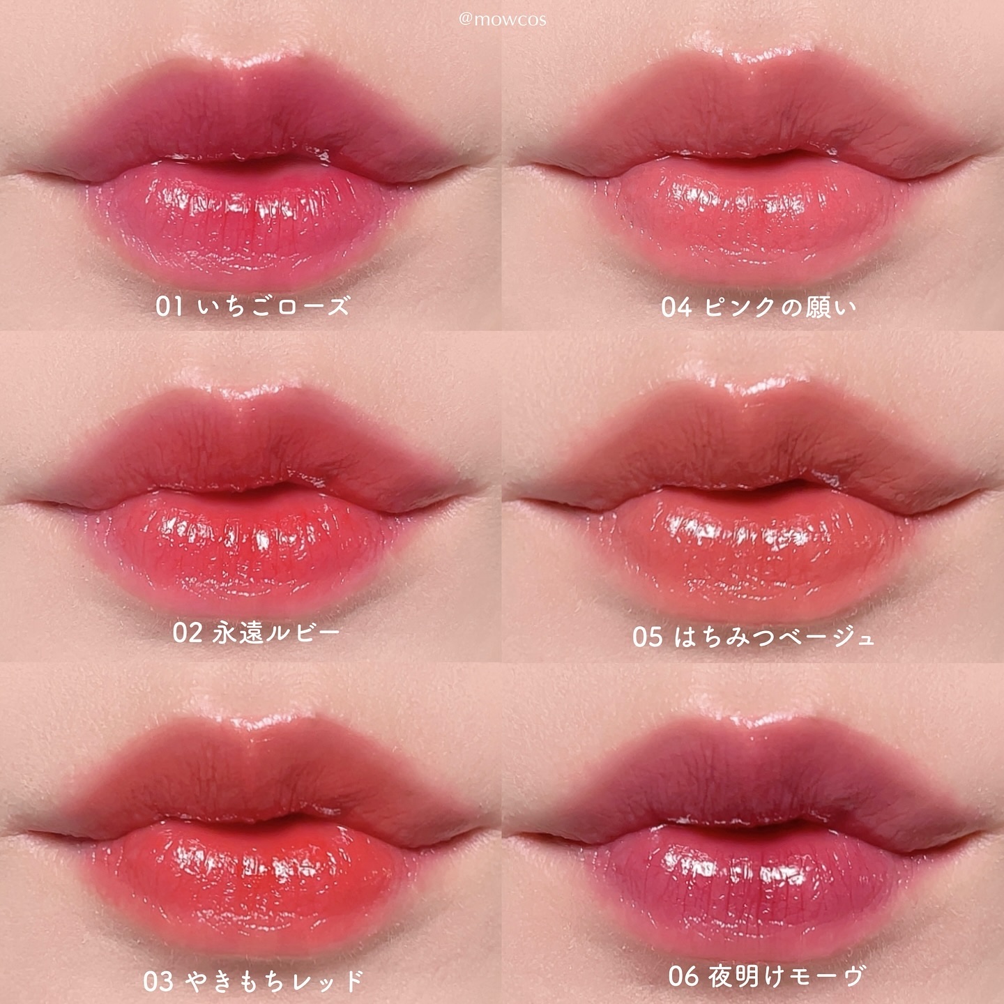 大好きなDintoのガラス玉ティント。 ご覧の通り色出しがとにかく洒落てて奥深いというか味わいがあるというか、影があるというのか、、 ベタベタしないのにガラス玉のような濃厚なツヤ感が出るのが特徴。 ミルク味のキャンディーのような甘い香りも好き🫶🏻 色持ちもかなり良いです◎ オフライン限定色は発売までまだ少しあるけど、メガ割でひと足先に他の色もぜひ試してみて欲しいわたしの1番好きなティントちゃんです🥹