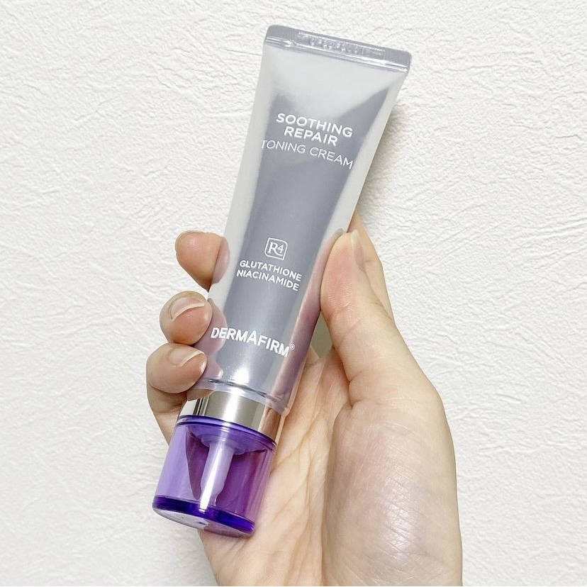 肌に優しいスキンケアを研究開発しているDERMAFIRMから、人気のR4ブランドにグルタチオンシリーズが新登場🎉 出してみると、やわらかいクリームテクスチャーです。なめらかで伸びの良い使用感🎵 シルバーとパープルのパケも高級感があり、おしゃれです💛