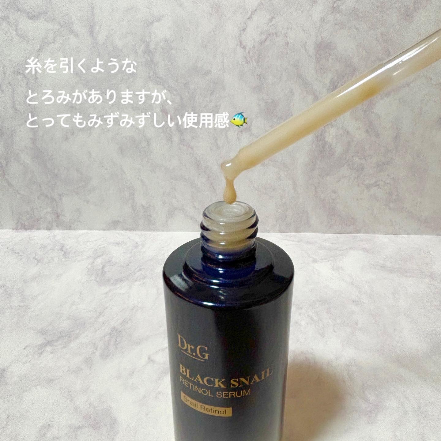 ブラックスネイルとレチノールを配合したDr.Gの美容液 Dr.Gのレチノールは独自の成分であるブラックスネイルレチノールを使用✨ 第1世代レチノールと第2世代レチノールの長所だけを活かして第3世代レチノールとブラックスネイルを配合した成分を開発! セラムは少しとろみのあるテクスチャーで伸びがよくてしっとりした使用感 フローラルに似ているいい香りがします!