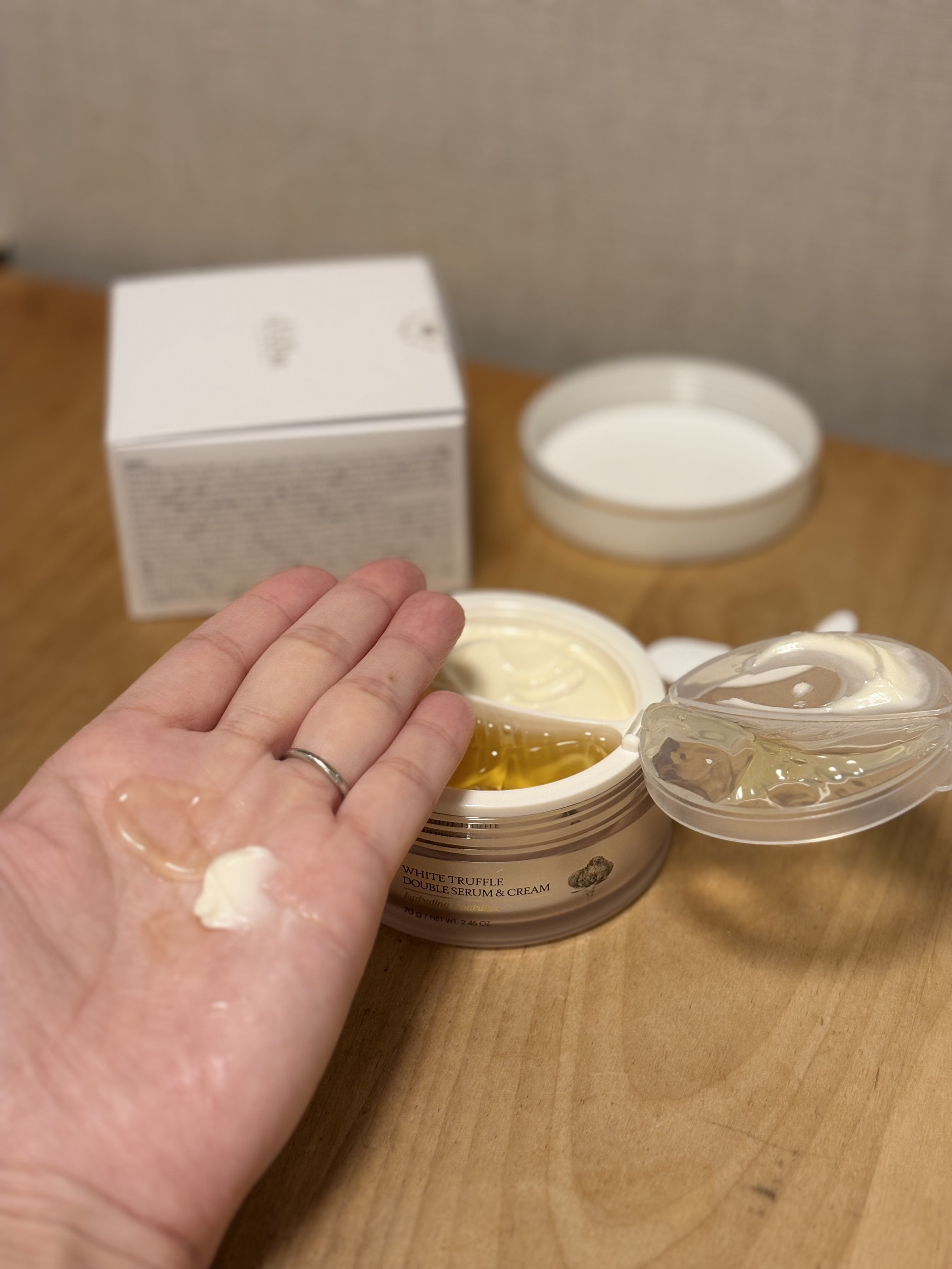 肌のキメの乱れによるくすみやハリ不足、乾燥などをケアし、使い続けるほどに、みずみずしい輝きのある肌に整えてくれるそうです。 手に出してみるとさらっとしたテクスチャーになっています。お肌に馴染ますとスッーと馴染みが良くてさらっとしています。乾燥が、気になっていたので愛用したいです。