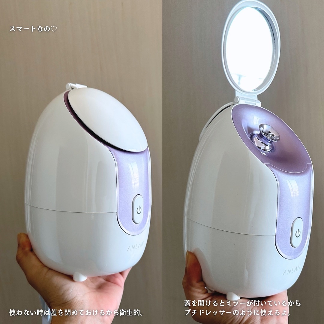 美人百花で微粒子スチーマー部門第1位🏅 毛穴より小さな『ナノ微粒化』されたスチームが毛穴汚れや詰まった角栓を浮かせてすっきりと落としやすくしてくれます🙌🏻✨ フタの内側にミラーがついているので メイクオフの時もシートパックを貼る時も便利✨ メガ割期間(11月15日-11月27日)はなんとANLAN スチーマー美顔器が30%OFF以上でゲットできちゃう🉐💞