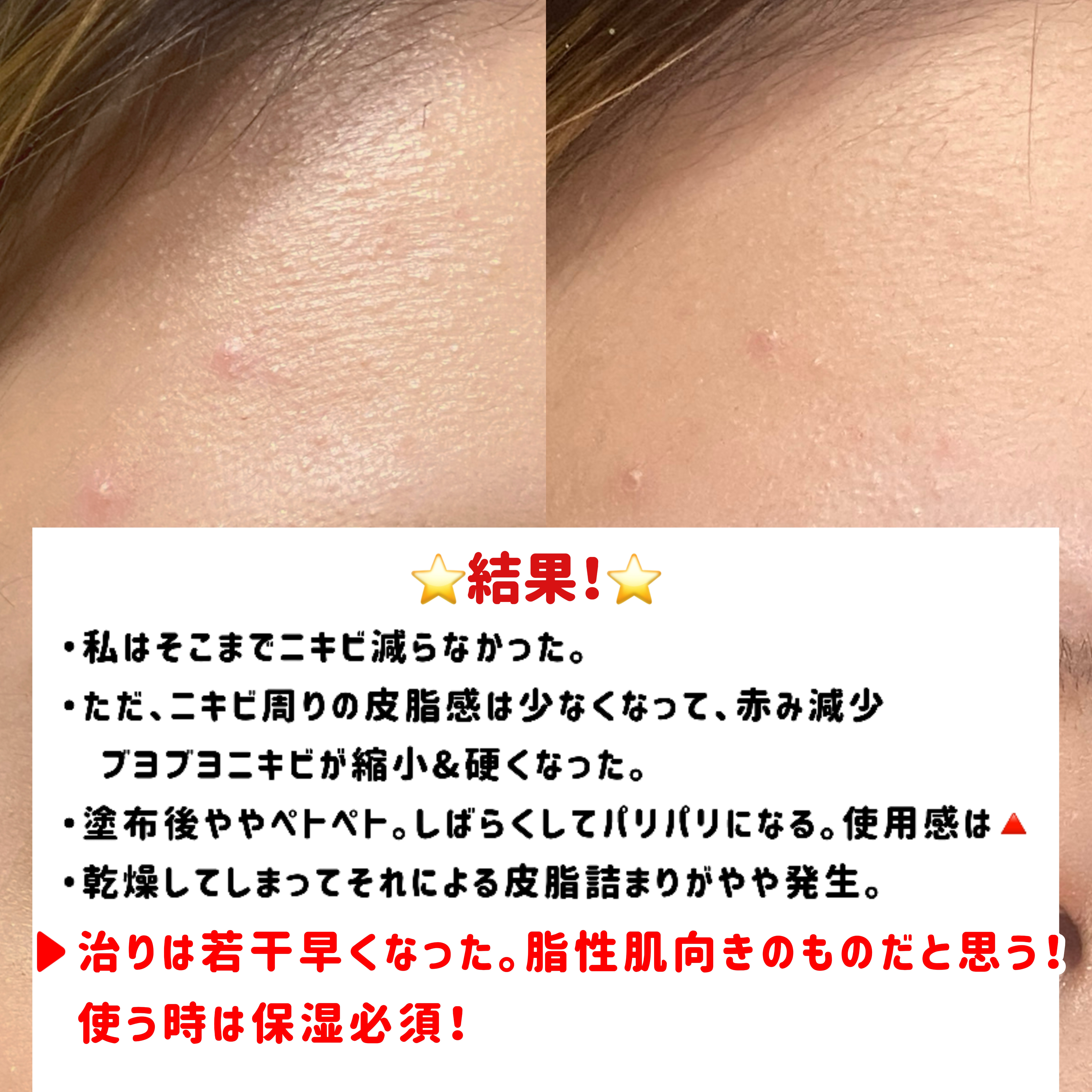 テクスチャーはさらさら系で伸びもいい◎ 塗った直後はペタつきがあって、苦手な使用感かも、、、と思ったのですが、少しおいたら肌がサラサラになっていてびっくりしました!! 朝起きた時の皮脂量も減っていたし、化粧崩れによるテカリも気にならなくなって感動しました😭✨ ニキビにも効果を感じたので、肌荒れ予防にも最適だと思います!