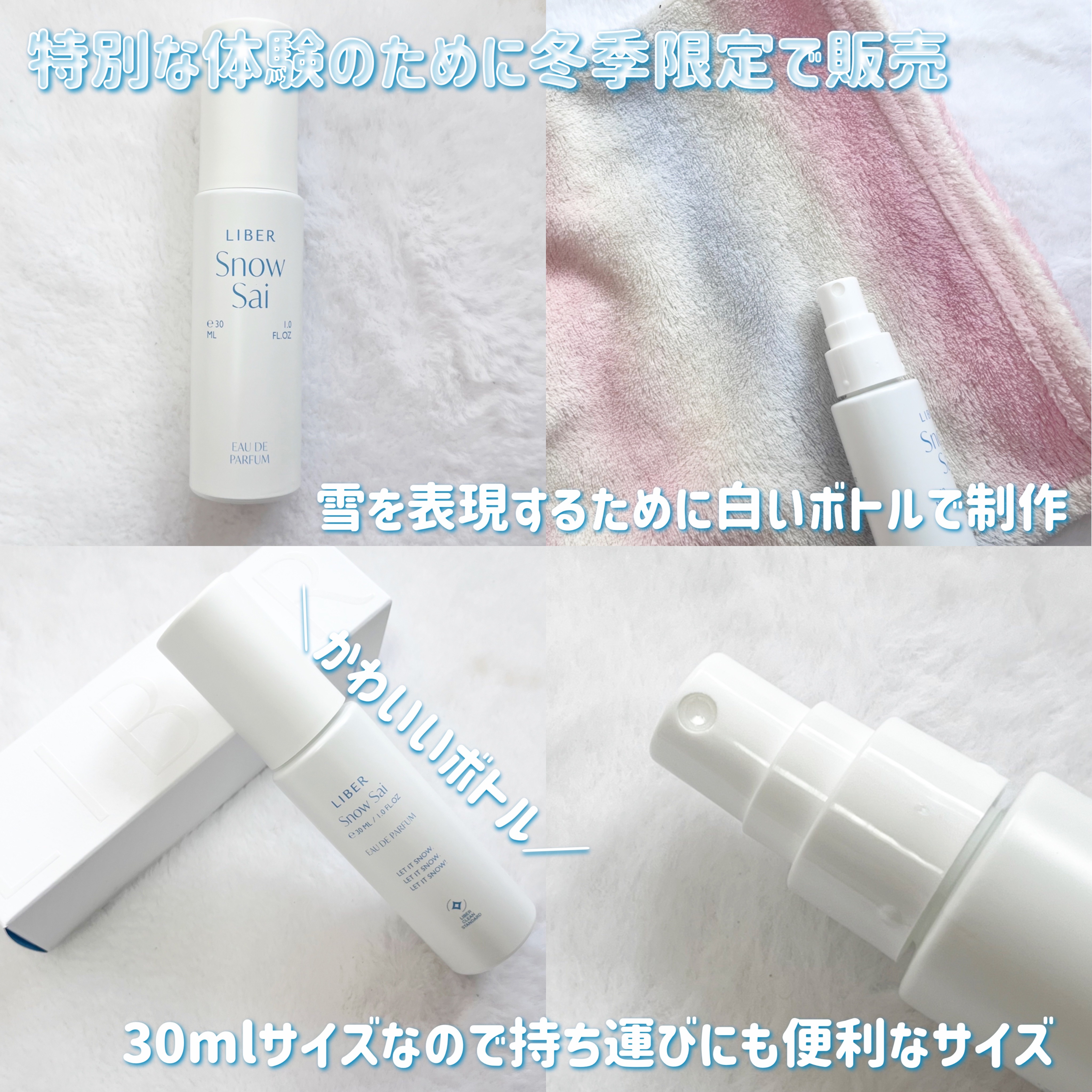 初雪のあたたかみと柔らかい石鹸のブレンド❄️ 韓国の大人気フレグランスブランドLIBERでルセラフィムのチェウォンちゃんが使用しているブランド様だそう🫢 雪を表現するために白いボトルで制作❄️