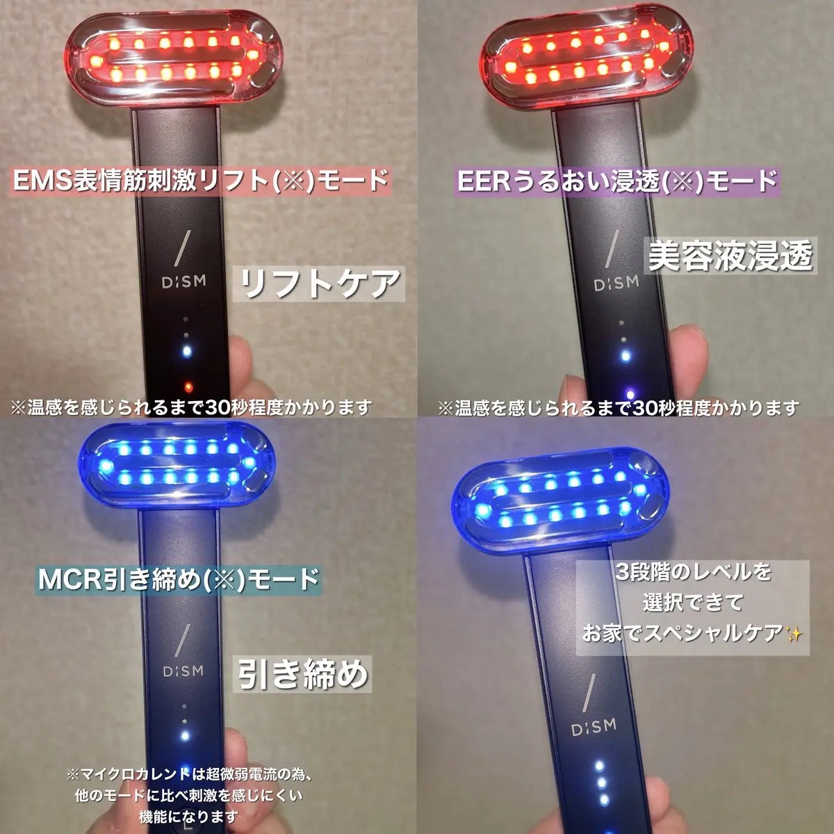 DISMから美容医療発想のメディケア美顔器が新登場💎✨ スリムで軽くてコンパクトサイズなのに多機能✨ 世界初*1うるおい浸透*2機能、EER*3モードが搭載されていて、使った後の肌仕上がりがすごく良くてゲットしてよかった美顔器だよ🖤🩶 8つも機能がある美顔器💎 EMS/EER*3 /RF*4/バイブレーション マイクロカレント/赤色LED/青色LED/温感