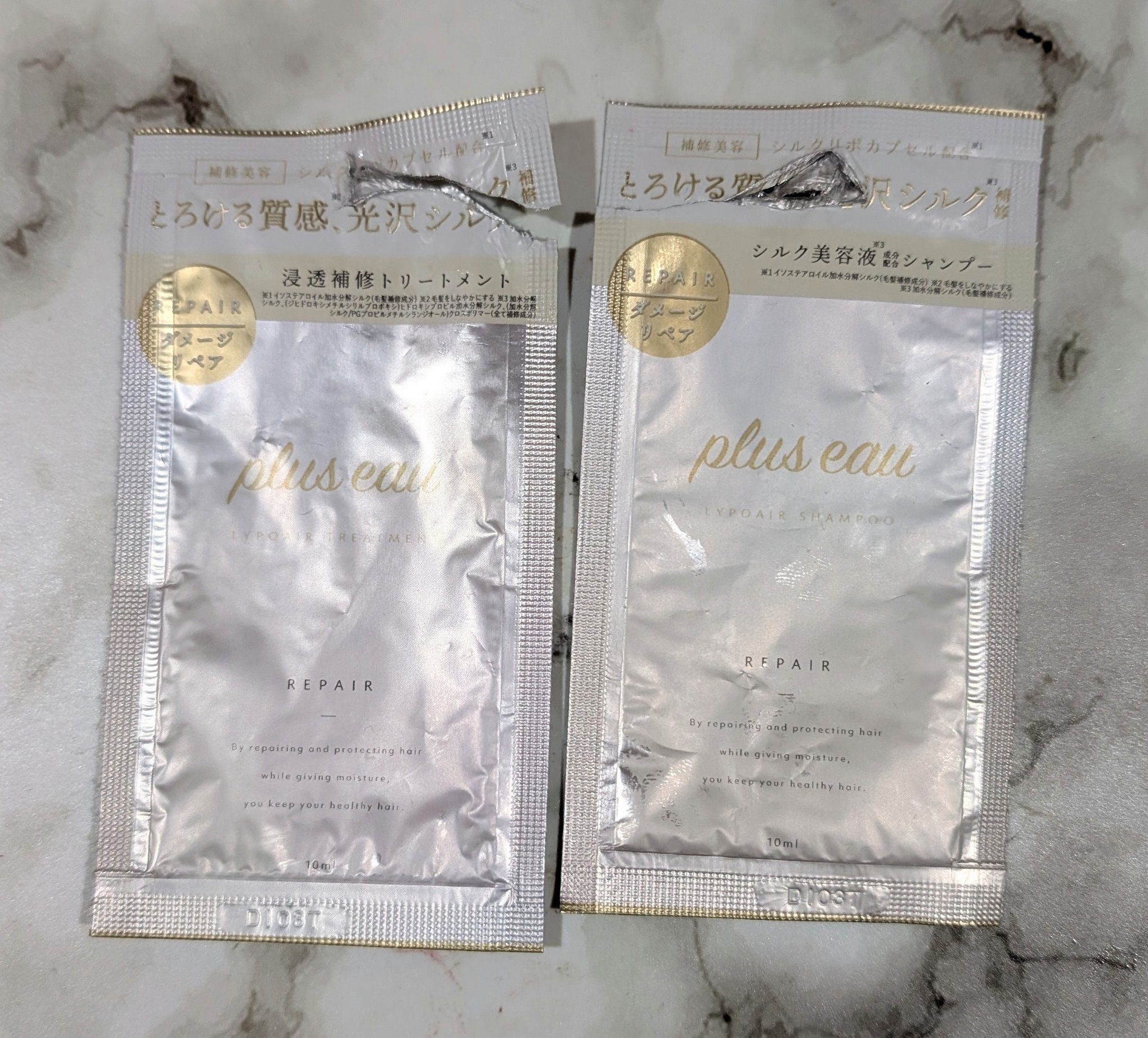 LIPSでも高評価のplus eauからダメージリペアに特化したリポアシリーズが登場♡ シリーズ最高濃度のPPTシルク洗浄成分のシャンプーとシルクリポカプセル*配合のトリートメントで傷んだ髪を光沢シルク**補修 上品なホワイトフローラル&ペアーの香りは幅広い世代に向けられたもの✨