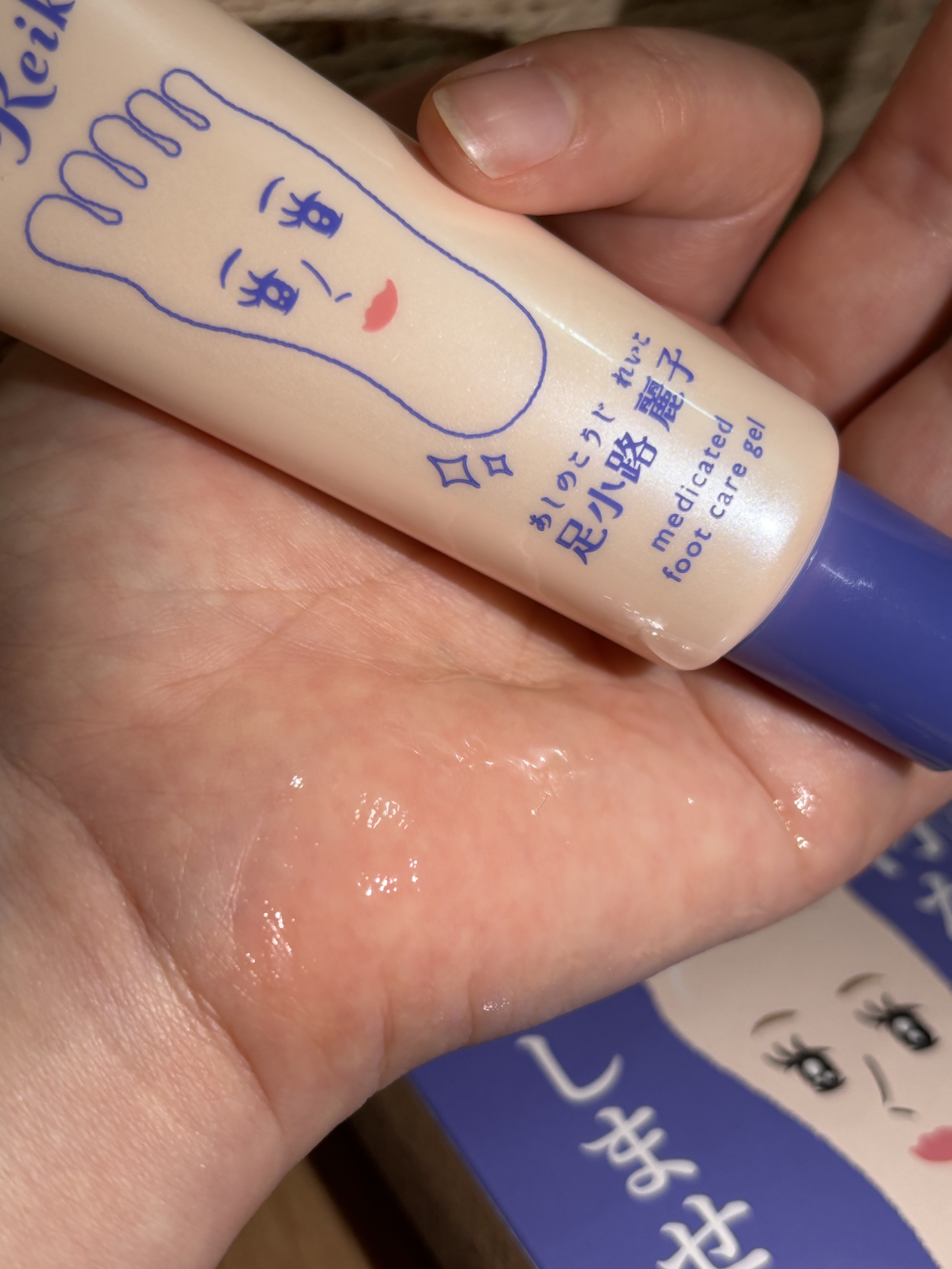 フットケアジェルで汚かかと卒業♡ すーっとしみこむ透明ジェルタイプでガサガサ角質をケア(*1)し、ひび割れを予防(*2)してくれます。 可愛くてかなりインパクトのあるパッケージ!でも実は角質研究を続けて87年の化粧品会社さんが作った本気のフットケアアイテムなの。 透明のみずみずしいテクスチャーのジェル。お肌にスッとなじんでベタつかないのが魅力的!