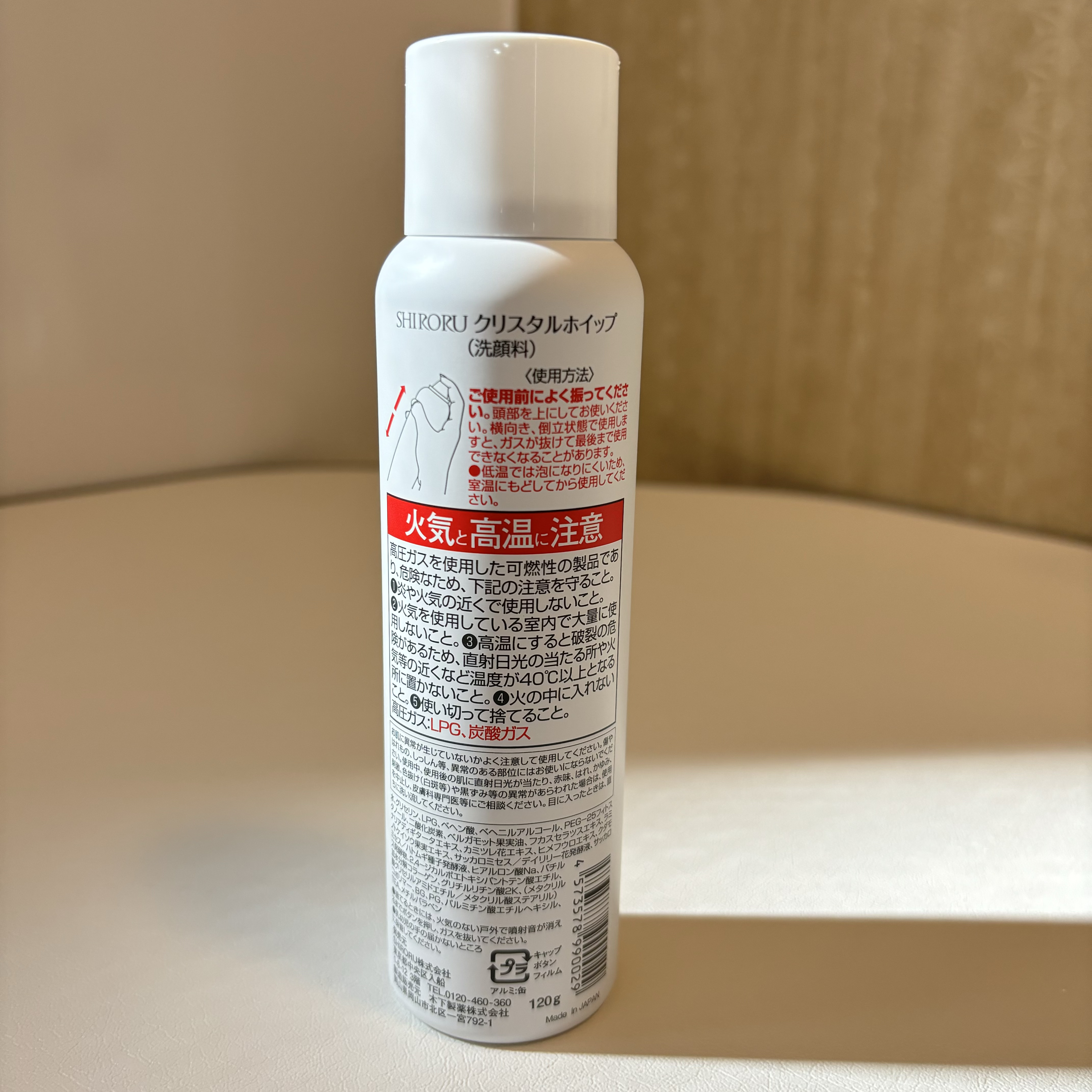 - <クリスタルホイップ> 水、グリセリン、LPG、ベヘン酸、ベヘニルアルコール、PEG−25フィトスタノール、ヒアルロン酸Na、加水分解コラーゲン、グリチルリチン酸2K、レモングラス葉/茎エキス、エーデルワイスカルス培養エキス、カミツレ花エキス、サッカロミセス/ハトムギ種子発酵液、二酸化炭素、ベルガモット果実油、フカスセラツスエキス、ラミナリアディギタータエキス、ヒメフウロエキス、クダモノトケイソウ果実エキス、サッカロミセス/デイリリー花発酵液、バチルス発酵物、2,4−ジカルボエトキシパントテン酸エチル、(メタクリル酸グリセリルアミドエチル/メタクリル酸ステアリル)コポリマー、BG、PG、パルミチン酸エチルヘキシル、TEA、メチルパラベン <120g> 水、グリセリン、LPG、ベヘン酸、ベヘニルアルコール、PEG−25フィトスタノール、ヒアルロン酸Na、加水分解コラーゲン、グリチルリチン酸2K、レモングラス葉/茎エキス、エーデルワイスカルス培養エキス、カミツレ花エキス、サッカロミセス/ハトムギ種子発酵液、二酸化炭素、ベルガモット果実油、フカスセラツスエキス、ラミナリアディギタータエキス、ヒメフウロエキス、クダモノトケイソウ果実エキス、サッカロミセス/デイリリー花発酵液、バチルス発酵物、2,4−ジカルボエトキシパントテン酸エチル、(メタクリル酸グリセリルアミドエチル/メタクリル酸ステアリル)コポリマー、BG、PG、パルミチン酸エチルヘキシル、TEA、メチルパラベン <120g(ディズニー限定デザイン)> 水、グリセリン、LPG、ベヘン酸、ベヘニルアルコール、PEG−25フィトスタノール、ヒアルロン酸Na、加水分解コラーゲン、グリチルリチン酸2K、レモングラス葉/茎エキス、エーデルワイスカルス培養エキス、カミツレ花エキス、サッカロミセス/ハトムギ種子発酵液、二酸化炭素、ベルガモット果実油、フカスセラツスエキス、ラミナリアディギタータエキス、ヒメフウロエキス、クダモノトケイソウ果実エキス、サッカロミセス/デイリリー花発酵液、バチルス発酵物、2,4−ジカルボエトキシパントテン酸エチル、(メタクリル酸グリセリルアミドエチル/メタクリル酸ステアリル)コポリマー、BG、PG、パルミチン酸エチルヘキシル、TEA、メチルパラベン <クリスタルホイップ【旧】> 水、グリセリン、LPG、ベヘン酸、ベヘニルアルコール、PEG-25フィトスタノール、二酸化炭素、ベルガモット果実油、フカスセラツスエキス、ラミナリアディギタータエキス、カミツレ花エキス、ヒメフウロエキス、クダモノトケイソウ果実エキス、サッカロミセス/デイリリー花発酵液、サッカロミセス/ハトムギ種子発酵液、ヒアルロン酸Na、バチルス発酵物、2,4-ジカルボエトキシパントテン酸エチル、加水分解コラーゲン、グリチルリチン酸2K、(メタクリル酸グリセリルアミドエチル/メタクリル酸ステアリル)コポリマー、BG、PG、パルミチン酸エチルヘキシル、TEA、メチルパラベン