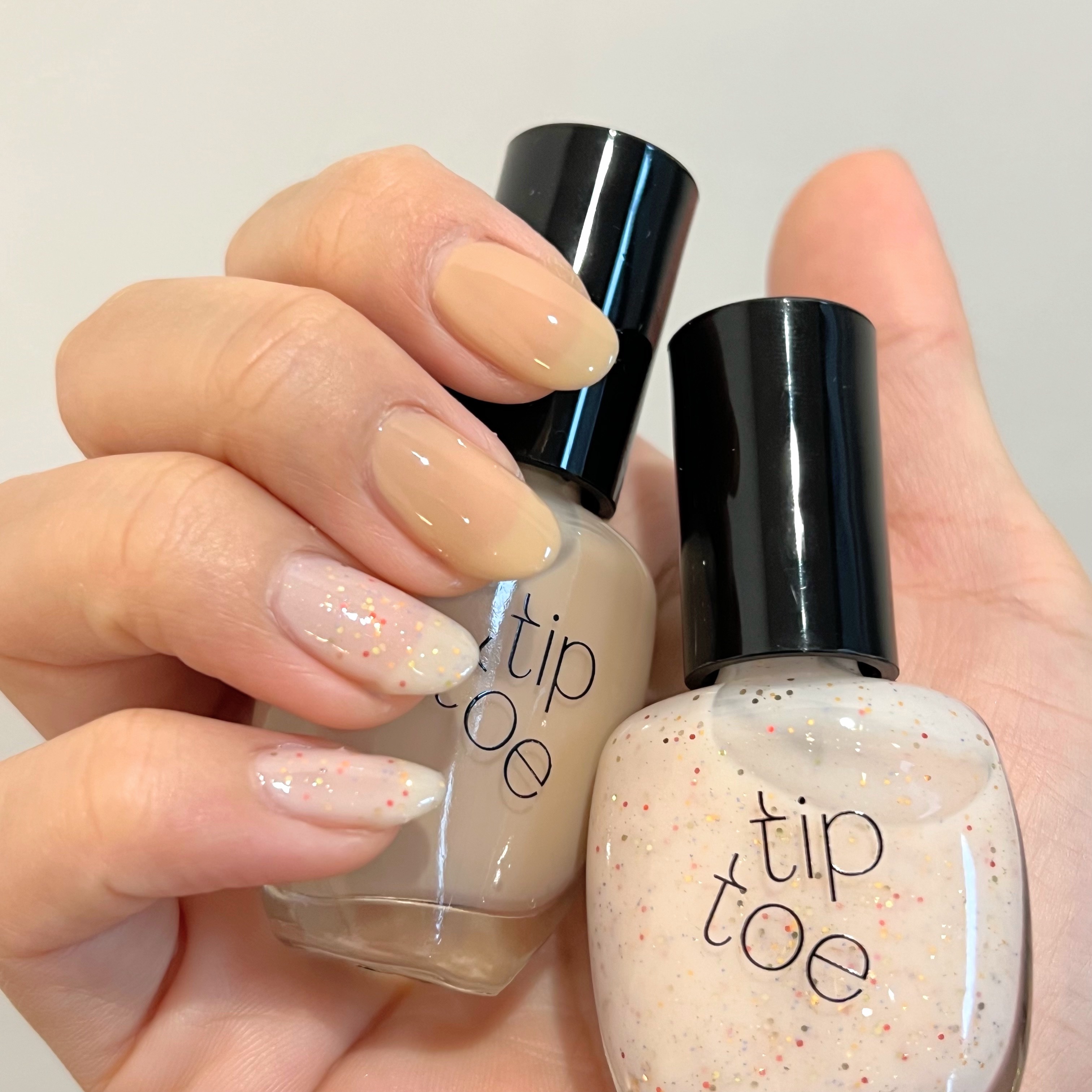 韓国で有名なネイルブランド(オリーブヤング1位)tiptoeのネイルポリッシュを3色レビュー👀 軽快で強烈なふたつのダンスのようなブリックレッドにカラードットグリッターを混ぜたネイル ブラシはイタリア製のUカットブラシ 広がりがよくムラになりにくいので好印象でした◎