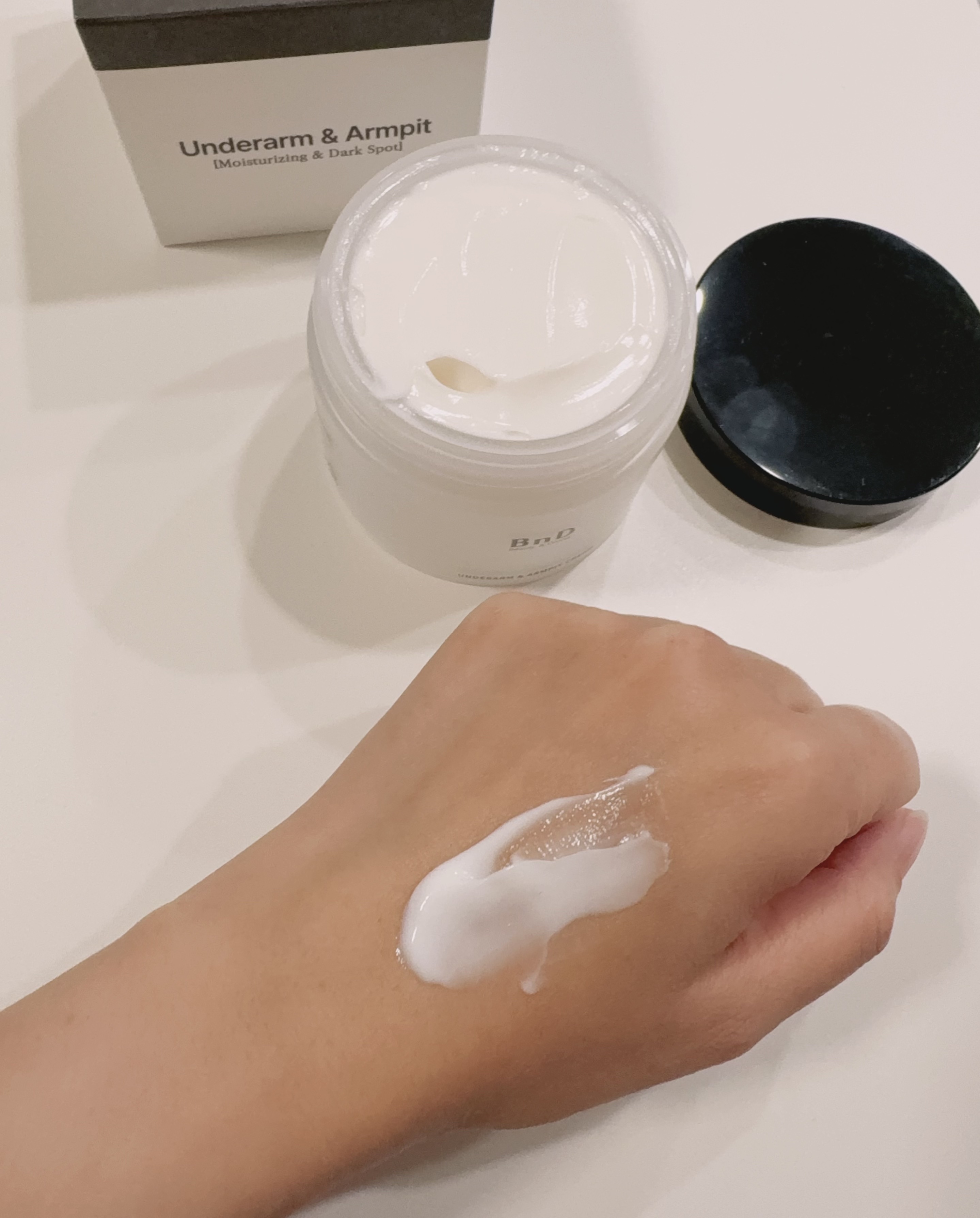 Qoo10ボディケア1位! 顔以外の全身の黒ずみに使用可能◎ 全身に使えるBnDアンダーアームクリーム のびが良くしっとり保湿感もありベタつかない! VIO、脇、膝など見えない部分までケアできる しっとり保湿感もありベタつかない