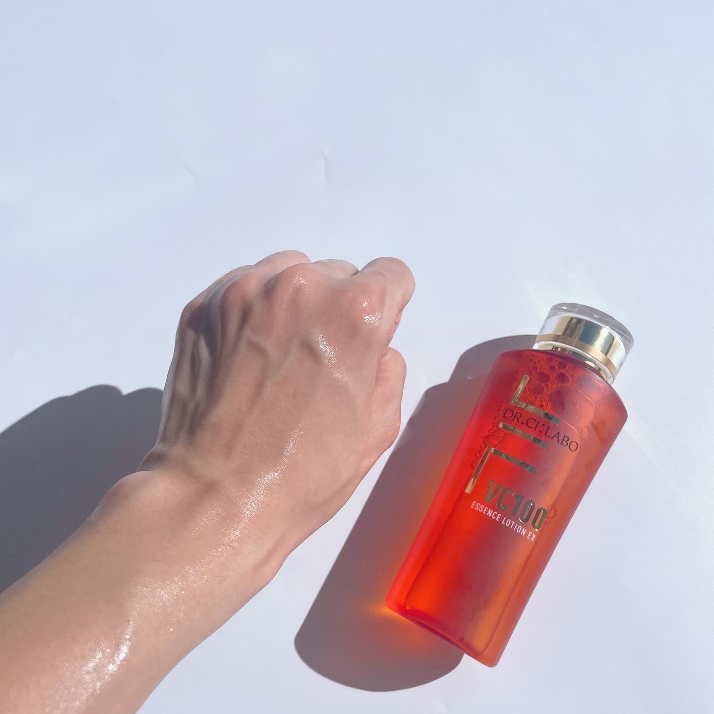 こちらはドクターシーラボ®のVC100 エッセンスローションEX😆💓 LIPSでも大人気高浸透ビタミンC*配合の化粧水😊肌のキメを整えて、光を反射するつや肌へ🤍 テクスチャはとろっと濃厚🫰 なのにサッと浸透、べたつかないの!柑橘系のさわやかな香りも良い感じだよ😆👍 大人気の理由がわかる使い心地です🩷
