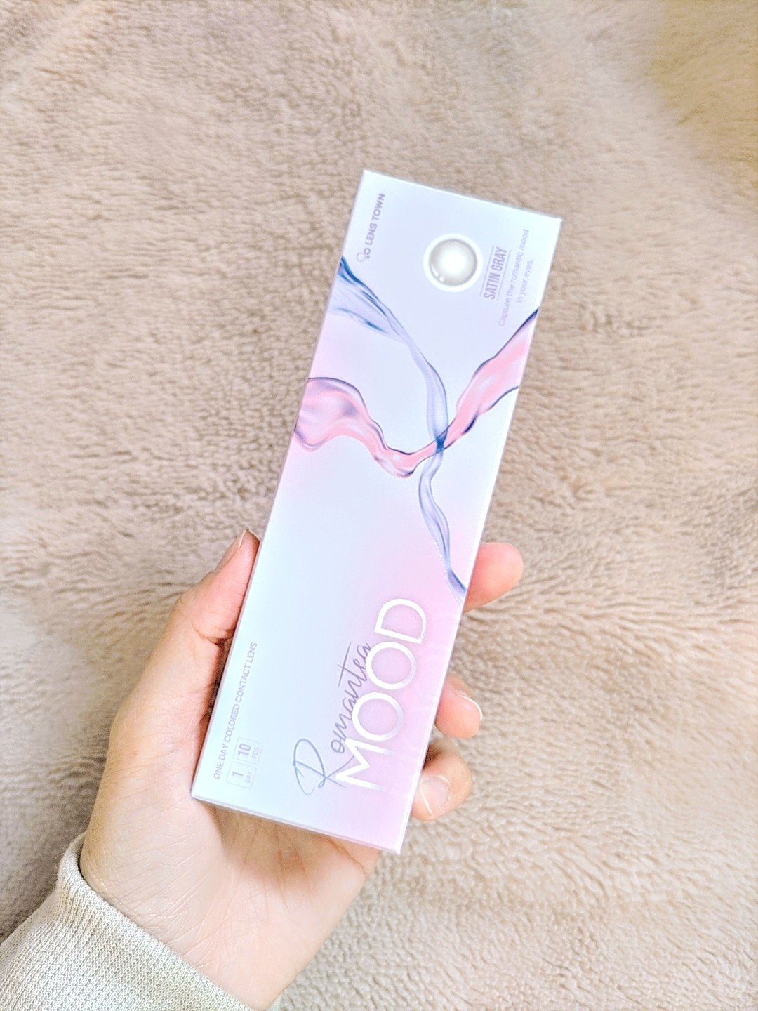 深い海に差し込む日差しのような明るくスッキリしたイメージのカラコン Romantea Moodが美しい発色…! ナチュラルに目元を印象付けるデザイン。発色も裸眼に馴染みながら色づくからムードのある目元を演出🌙 着色直径小さめの13.0mm👌🏻 裸眼が明るめの茶色ですが、サテングレーを使用してもそこまで不自然にならず使いやすいです🙆🏼♀️
