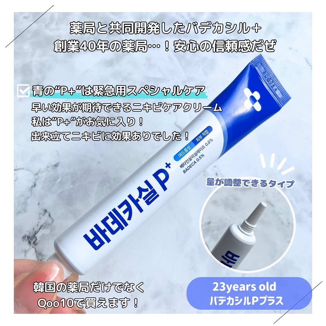 このバデカシルは韓国の40年伝統の薬局で共同開発されたニキビ再生クリームだそう。 しかもアレルギー FREEの製品で、局所部位から顔全体までケアできるニキビ肌に適した再生クリームとのこと。 マスクはフィルムが付いているタイプで、まずはフィルムがついたまま顔に乗せて後からそれをはがすと綺麗に肌に乗ってくれます♡