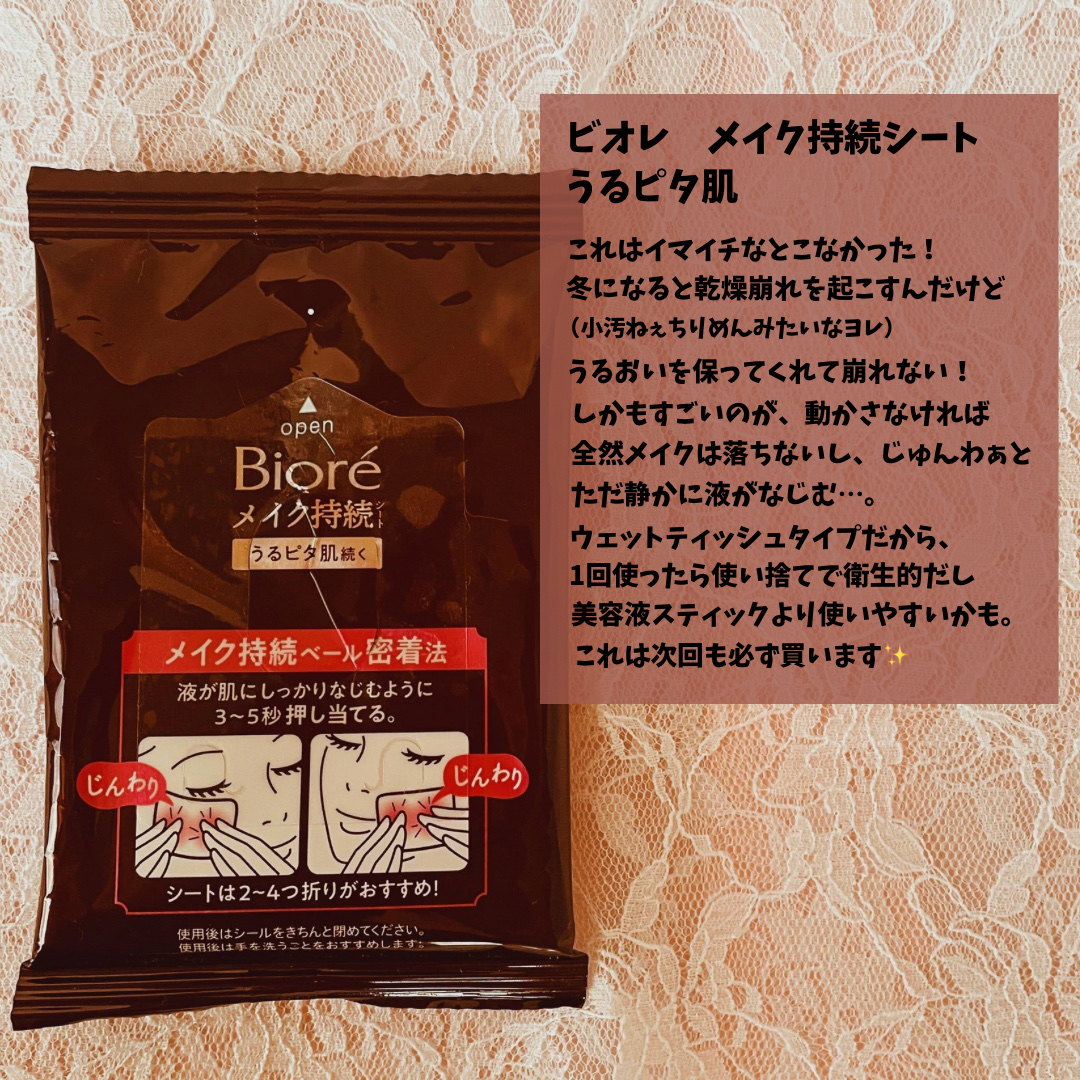 ビオレ ビオレメイクの上からうるピタ肌持続シート | 547円 |