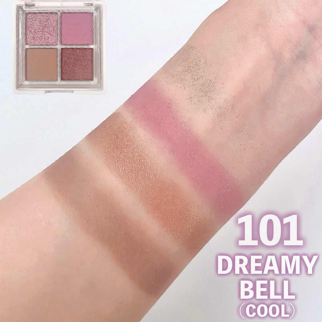 このマットタイプはマット3色とラメ1色の4色構成のアイパレット🎨 マット質感なんだけど重ね塗りしても重たくならず、むしろ透け感のあるツヤ感が出るの!! ほんのりツヤも感じる仕上がりになるので、マット系のアイシャドウが苦手な方でも使いやすい☺️ 粉質がしっとりしているので、粉飛びせずしっかりと肌に密着してくれるしさらっとした軽いつけ心地♡ 今回の新色チュチュバレリーナは甘さ控えめのピンクグレージュカラー!! 全体的に青み感のあるくすみカラーなのでブルベさんやくすみカラーが好きな方は絶対好きだと思う!! M06リマグレージュと比較するとチュチュバレリーナの方が青み強めで、程よく甘く儚い印象に仕上がるのが可愛い♡♡ 左上のシルバーラメが繊細でチラチラ輝いて最高に可愛いんよ…!! こちらの新色は2023年12月下旬よりイオンにて先行発売中、2024年1月下旬より全国発売、2024年4月頃定番化予定です!!