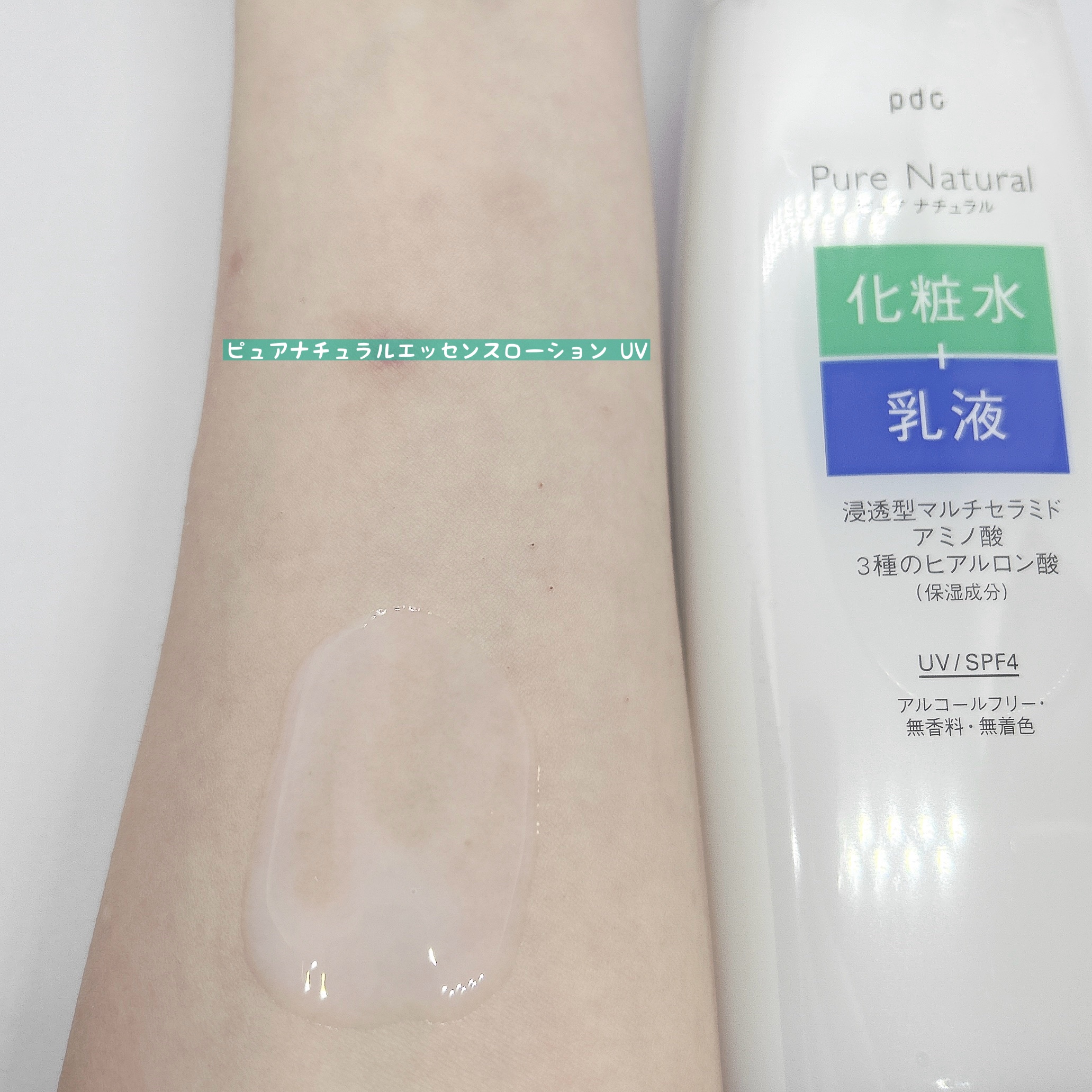 pdcピュアナチュラルエッセンスローションUVスキンケアをするのが面倒くさい時にとりあえずこれを使用してます😂❣️化粧水と乳液これひとつで乾燥対策にも✨乾燥による敏感肌にも🆗テクスチャーはとろっとしたみずみずしい乳液タイプ。肌馴染みがよくスー...