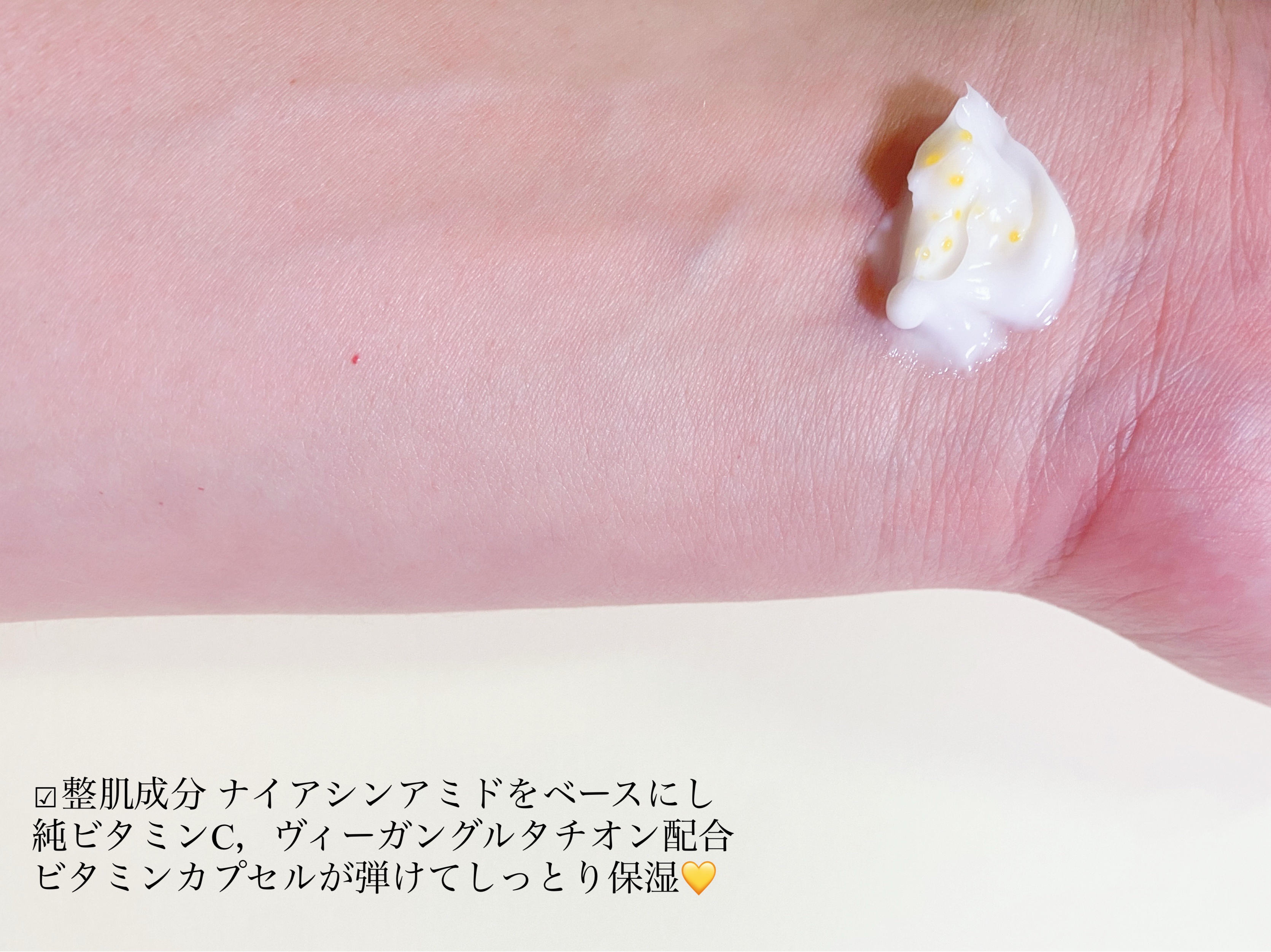 グルタチオン&ビタミンC含有のこっくりしたテクスチャーのクリーム🧸🥣 ͗ ͗ 肌に素早くブレンドされるビタミンカプセルでベタつかず透明感のあるお肌に仕上がったよ✨