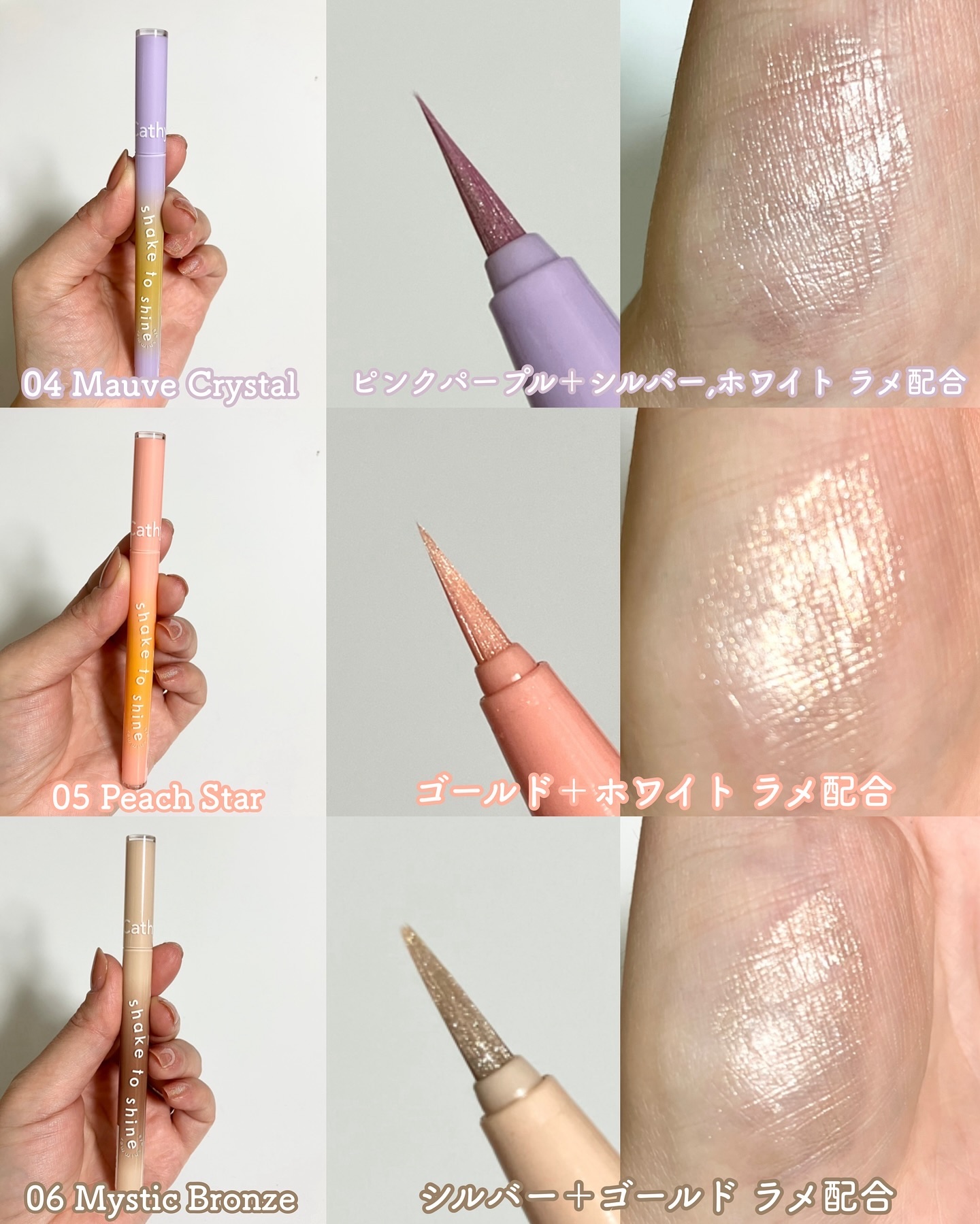 1日中落ちない、にじまない 大人の繊細ラメライナー が新登場! 全方位に光を放つシマーな輝きで立体感を演出! 0.1mmの極細筆で、速乾タイプだからピンポイントにも描きやすい❤️