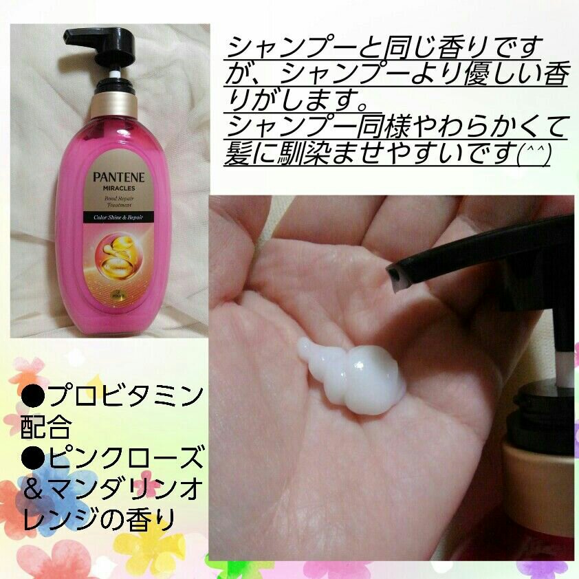 エクストラダメージリペアはPRO-V処方にケラチンを追加配合したミルクトリートメントになっております✨ 切れ毛・枝毛等のダメージ髪、つや不足が気になる方に。 カラーシャインボンドリペアシャンプートリートメントはカラー後の髪を優しく洗ってケアするシャンプー&トリートメントです。 調香師のこだわりのつまったピンクローズ&マンダリンオレンジの贅沢な香りです。
