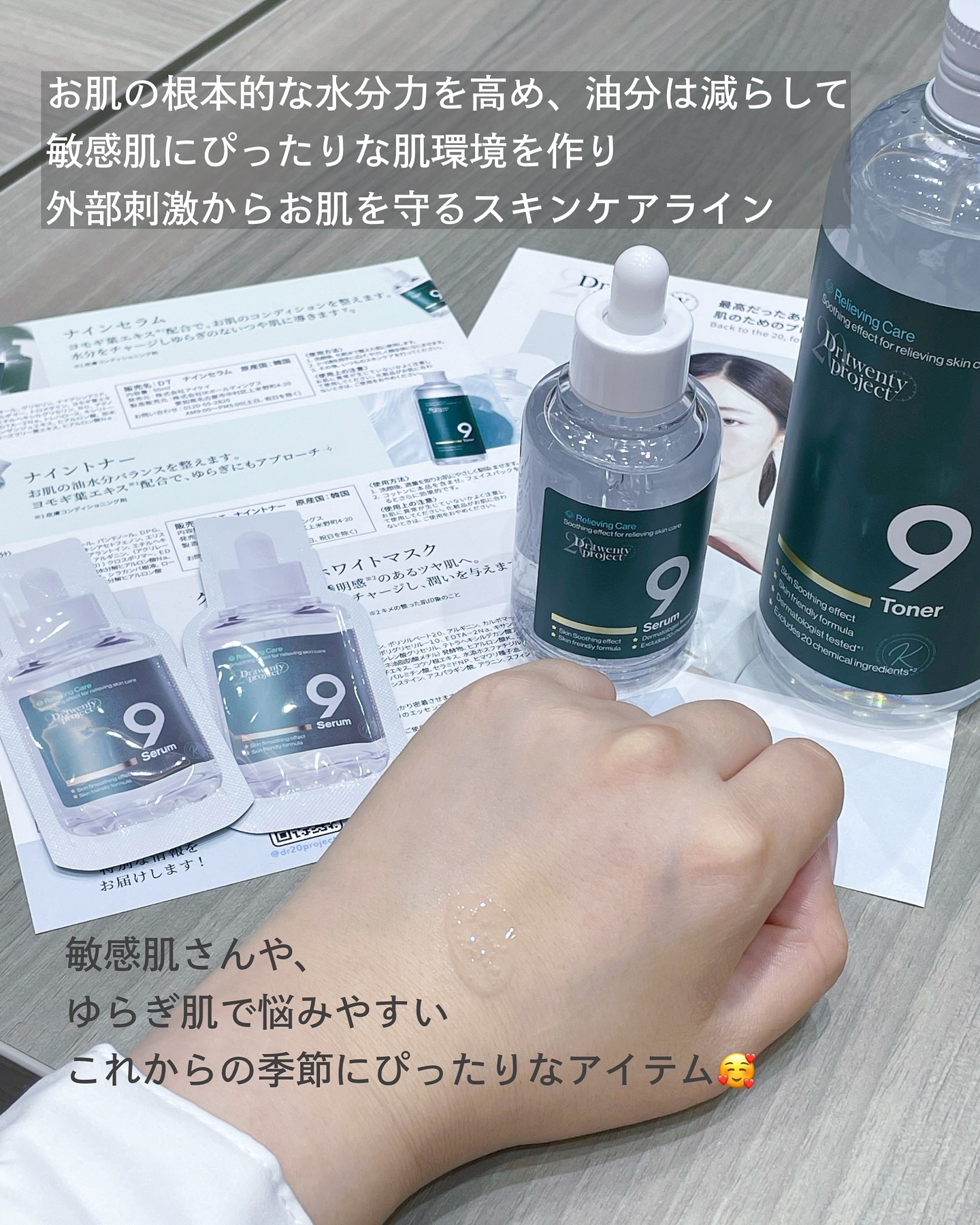 インナードライ肌の方におすすめしたい水分感たっぷりのトナーです! 軽い使用感のさっぱりとしたテクスチャーで、ベタつかずに肌になじみました ヒアルロン酸、シラカンバ樹液、キシリトール(保湿成分)など、9種類の美容成分がうるおいで満たしキメを整えてくれるセラムです! とろみのあるテクスチャーでしっとりとした使い心地!なのにベタつかない!