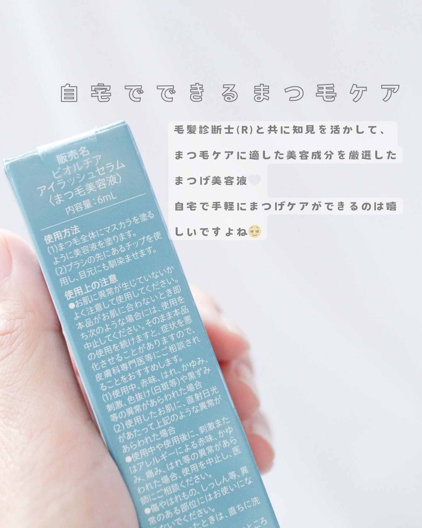 ティファニーブルーが素敵なまつ毛美容液👀✨ 実は…こちら! 私が一番最初に使ったまつ毛美容液で、現在も愛用していてお気に入りなのです😊 毛髪診断士(R)と共に知見を活かして、まつ毛ケアに適した美容成分を厳選 まつ毛ケアをするためのこだわり成分配合 デリケートなまつ毛に嬉しい 8種のフリー処方 塗りやすさにこだわった2WAYブラシ