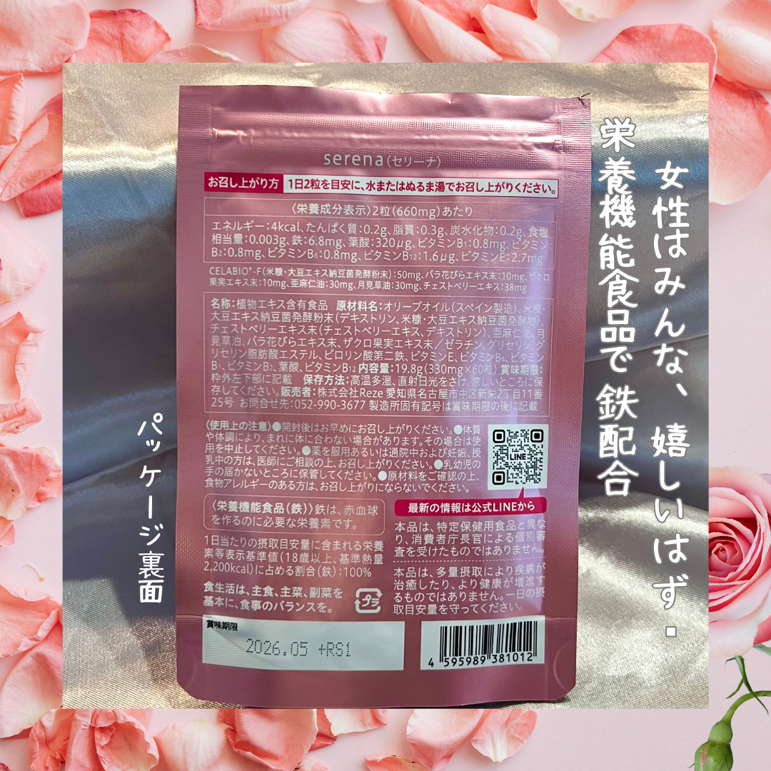 serena(セリーナ)は毎月のその不調に寄り添ってくれるサプリメントです🤍 つらさを知る当事者の方が開発したとのことで心強いです🥹 チェストベリーや鉄分、葉酸など女性の元気と綺麗をサポートしてくれる成分が配合されています 飲みやすさは重要なポイントです☝🏻 1日の目安量は2粒粒数が少なく飲みやすいので日々の生活に簡単に取り入れられました♪
