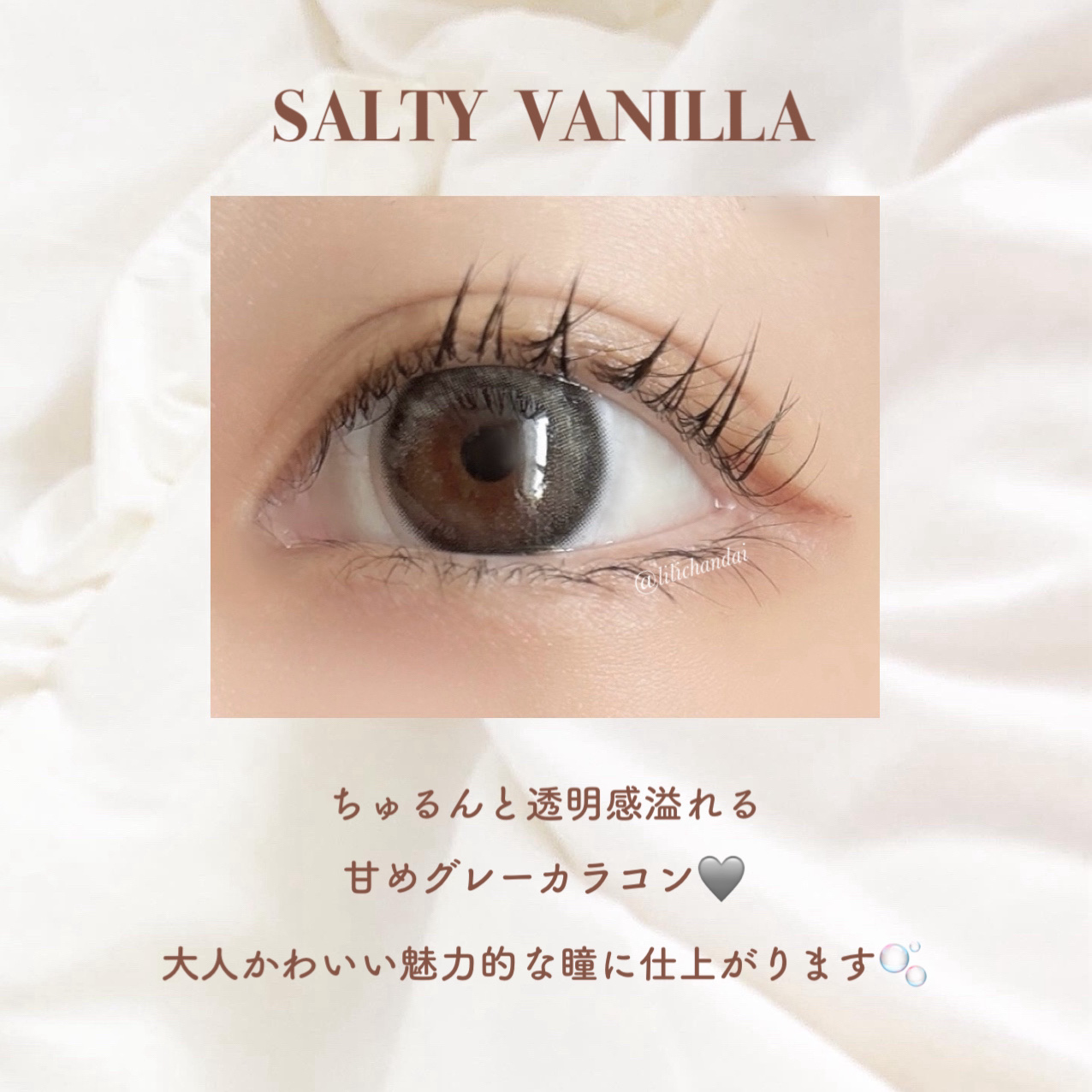 FLANMY 1day ソルティーバニラ(モアコン限定色) DIA14.5mm GDIA13.7mm 11/5新発売♡ バニラグレー×ハイライトの配色で、グレーカラコンなのにクールになりすぎない絶妙なカラーに♡ 着色直径13.7mmとやや大きめですが、立体感のあるデザインで宇宙人っぽくなることなく使いやすいです。