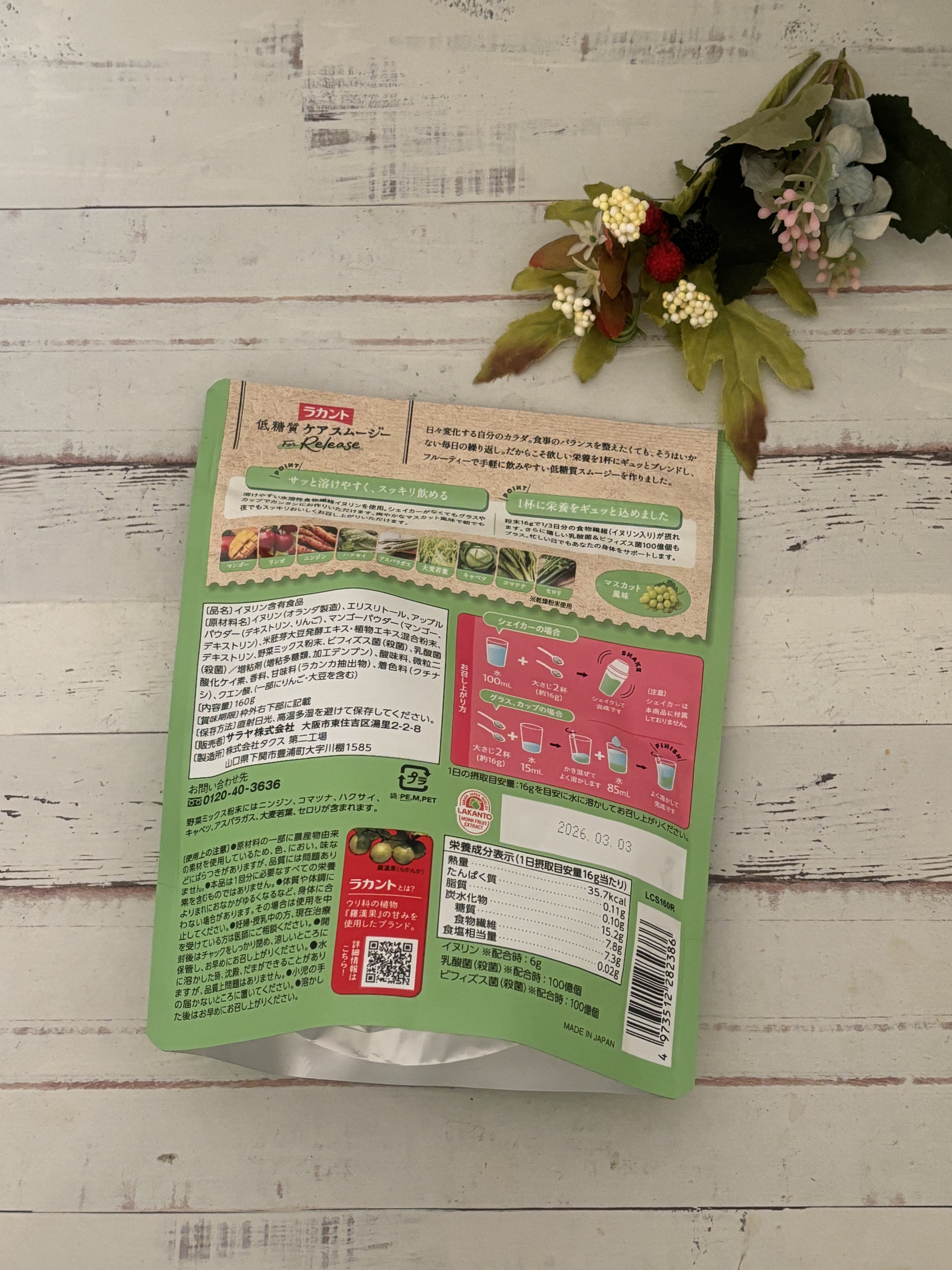 きめ細かなパウダー。私は水や豆乳に混ぜて飲んでいます。混ぜるとさっと溶けてくれます。 優しいマスカット風味で、とっても美味しいです。爽やかな甘さで飽きずに美味しく飲むことが出来ます。 欲しい栄養を1杯にギュッとブレンドした、フルーティーで飲みやすい粉末タイプの低糖質スムージーです。
