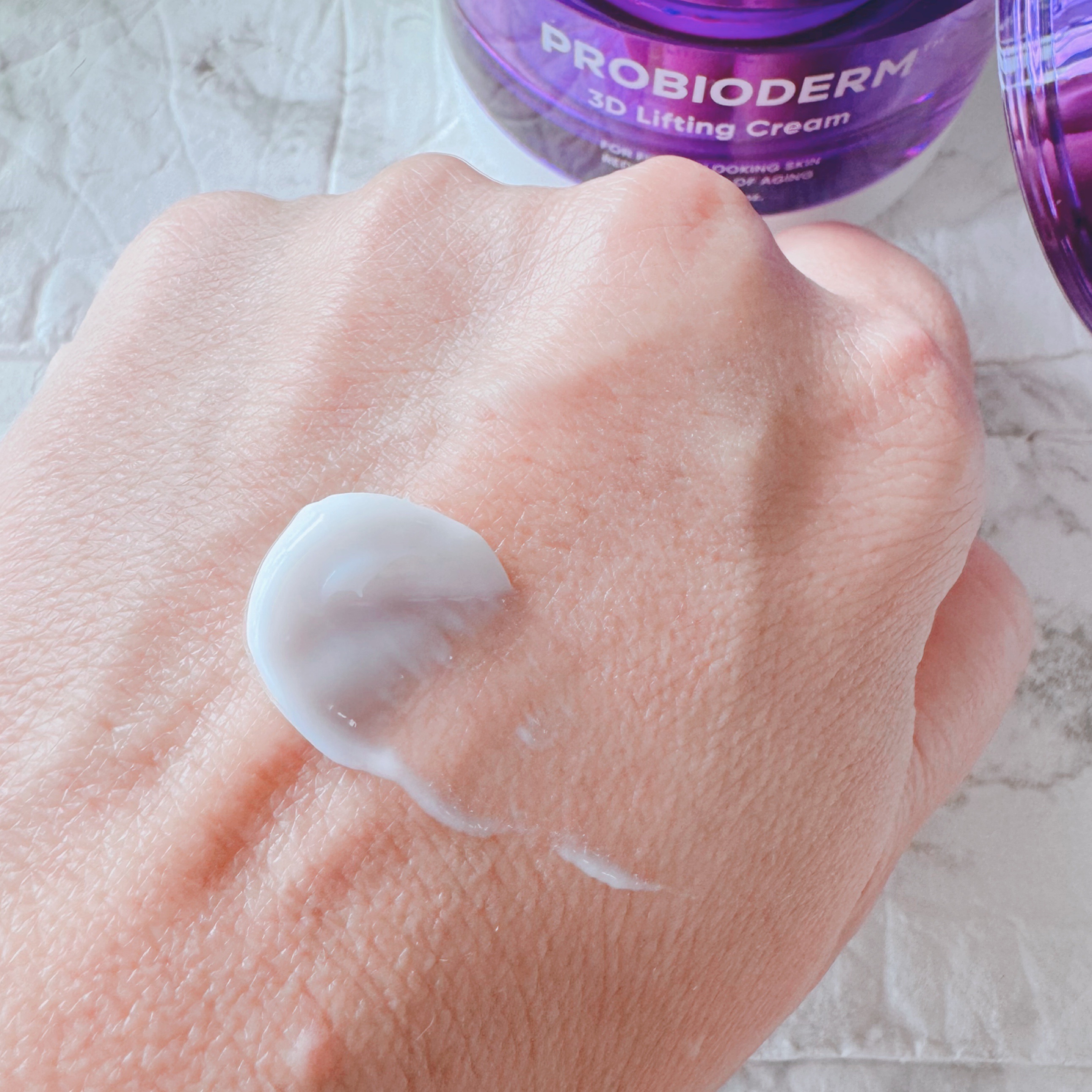ハリ弾力をケアすることから#ハリ活乳酸菌*をキャッチコピーとしていて、TOP3の選ばれし優秀な乳酸菌を配合しているという特徴があります。 バイオヒールボ独自の技術で肌表面をピンと引き上げ、よりリフトアップ感が得られるテクスチャーを実現したそうですよ。 濃厚なテクスチャーで上品の香り。コクがあるクリームで伸びがよく馴染みやすいですね。
