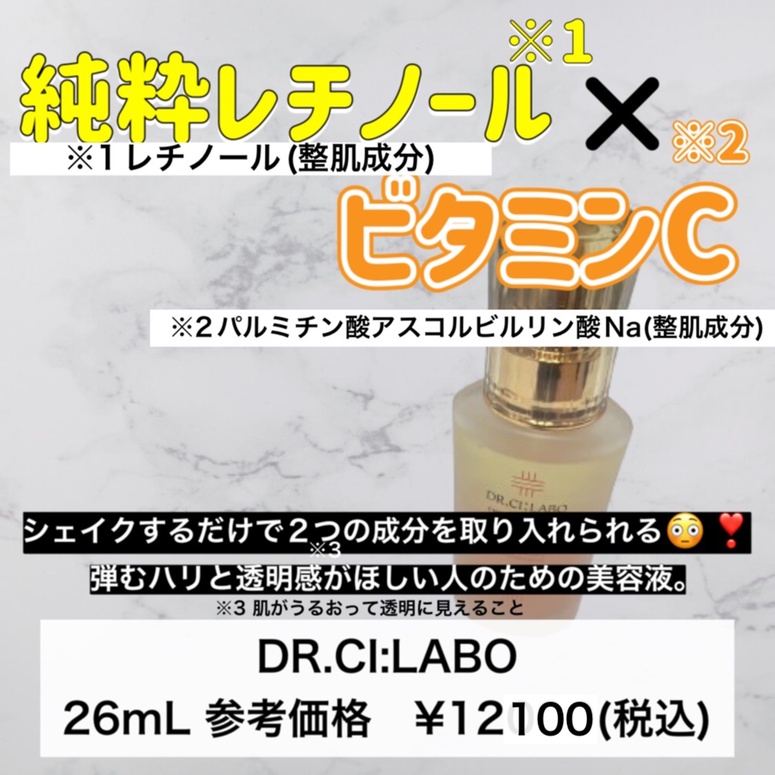 クリニック発のドクターシーラボならではの独自の処方で合わせることが難しかった2つの成分が1つに。 レチノールはハリや弾力感、ビタミンCは毛穴、キメ、くすみにアプローチ✨ この使用感に夢中です😳💞