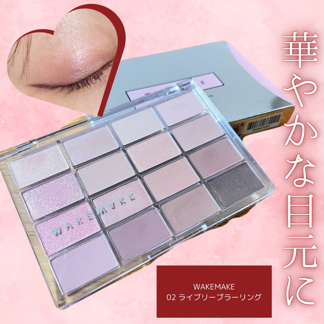 WAKEMAKEのアイシャドウパレット。韓国アイシャドウパレット色々もってるけど特にWAKEMAKEが好きです💗 02ライブリーブラーリングは、ピンク好きにはたまらないピンク要素があるカラーが16色入ったアイシャドウパレット。 発色もいいし、色味が全部好きでどうしよ?と思うぐらいお気に入りです。