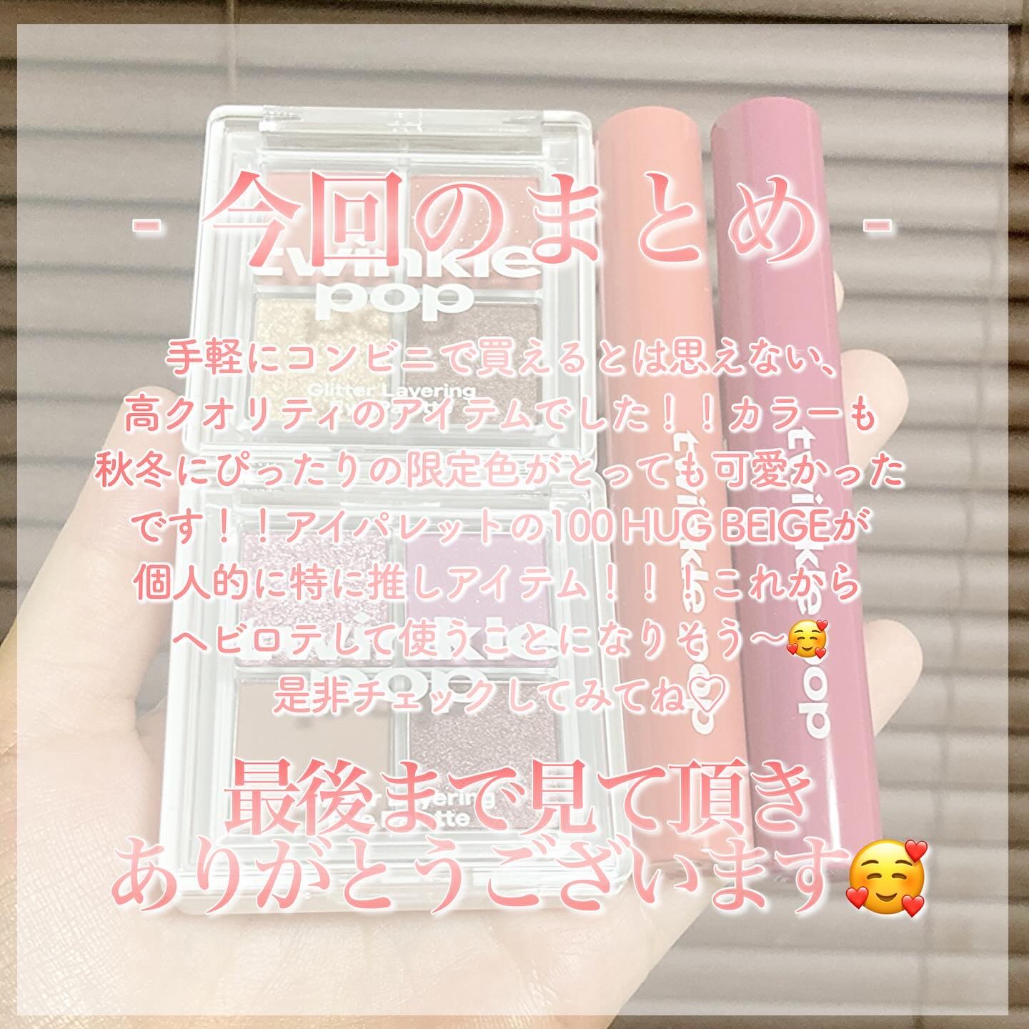 2024年11月23日から秋冬限定色発売! twinklepop by CLIO(トゥインクルポップバイクリオ) 微細なパールのキラキラ感がたまらん🥺 セブンイレブンで気軽に買いやすいのも嬉しいポイントだよ。 個人的にコンビニコスメがアツい🔥 ぜひチェックしてみてね〜!