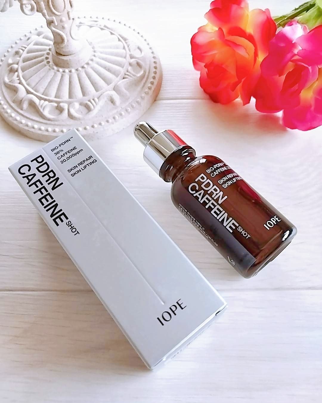 翌朝のむくみ解消、たるみケアで使ってる【PDRN カフェインショット】 トロッとしてるんだけど、使い心地はさっぱり 髪の毛の太さの1/400の粒子が肌にスッと浸透してくれるの。 スキンカフェインがお肌を目覚めさせて弾力性アップ、むくみ軽減👍🏻