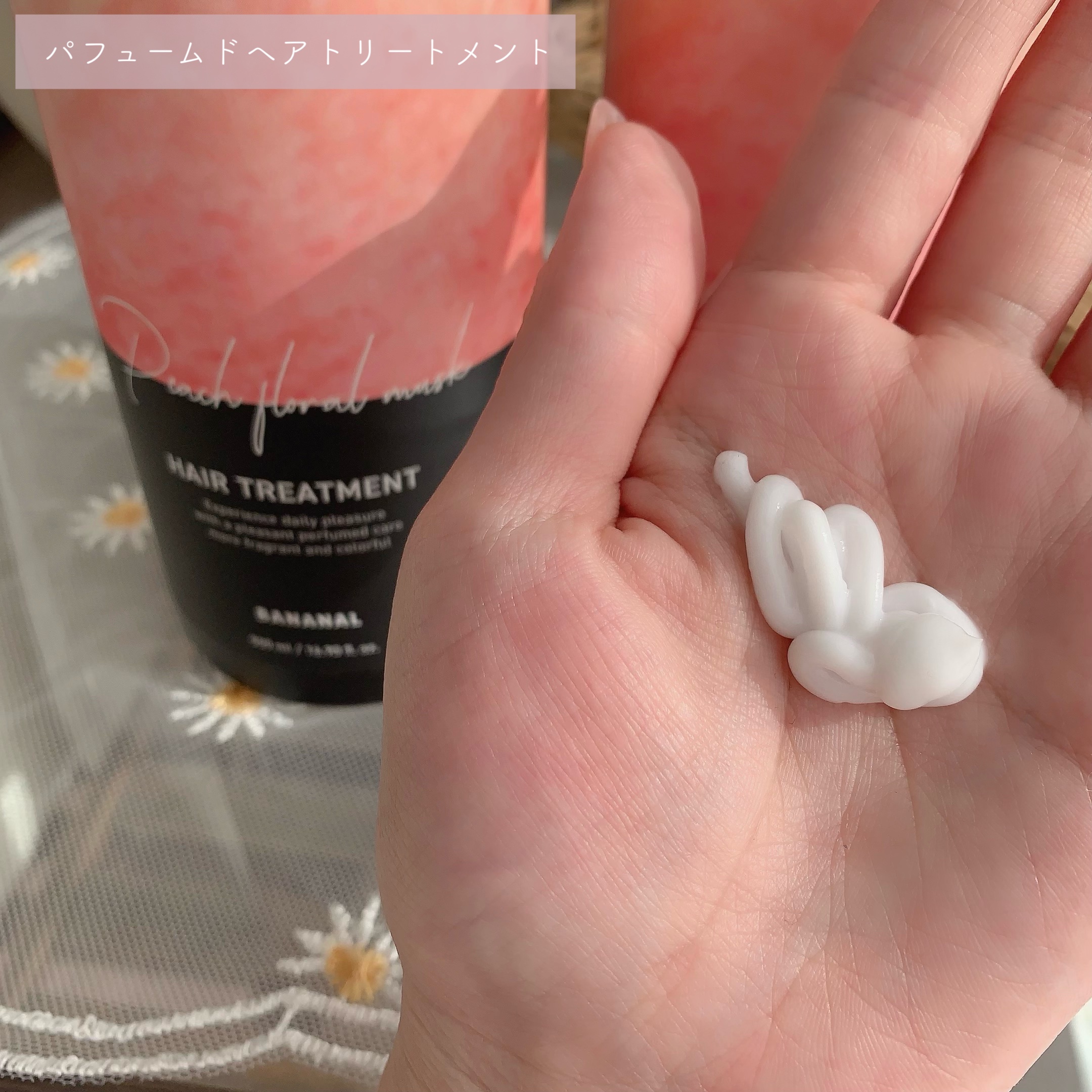 ふわふわで軽やかな泡立ちのシャンプーで洗い流したあとはさっぱりキュッとした感じです✨ バスルームいっぱいに広がるもぎたてフレッシュなピーチの良い香り🍑 なめらかでこっくりしたテクスチャーで包みこんでくれて洗い流した後はスルンとした感じです✨ バスルームいっぱいに広がるもぎたてフレッシュなピーチの良い香り🍑 髪を乾かした後はピーチからだんだんとムスクとライラックの落ち着いた香りに変化しながら長持ちしてくれて、まとまりのあるサラサラ仕上がり🌼✨