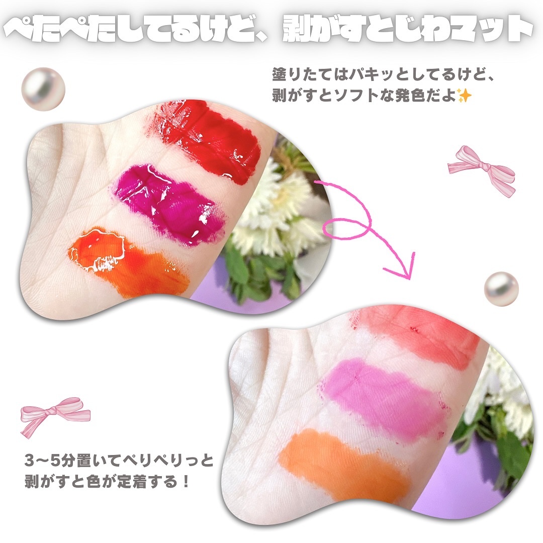 | かなりみずみずしいテクスチャーでつけたてはパキッとしたカラーでびっくりするけど剥がすと可愛すぎる…♡ | 詳細を見る | ||