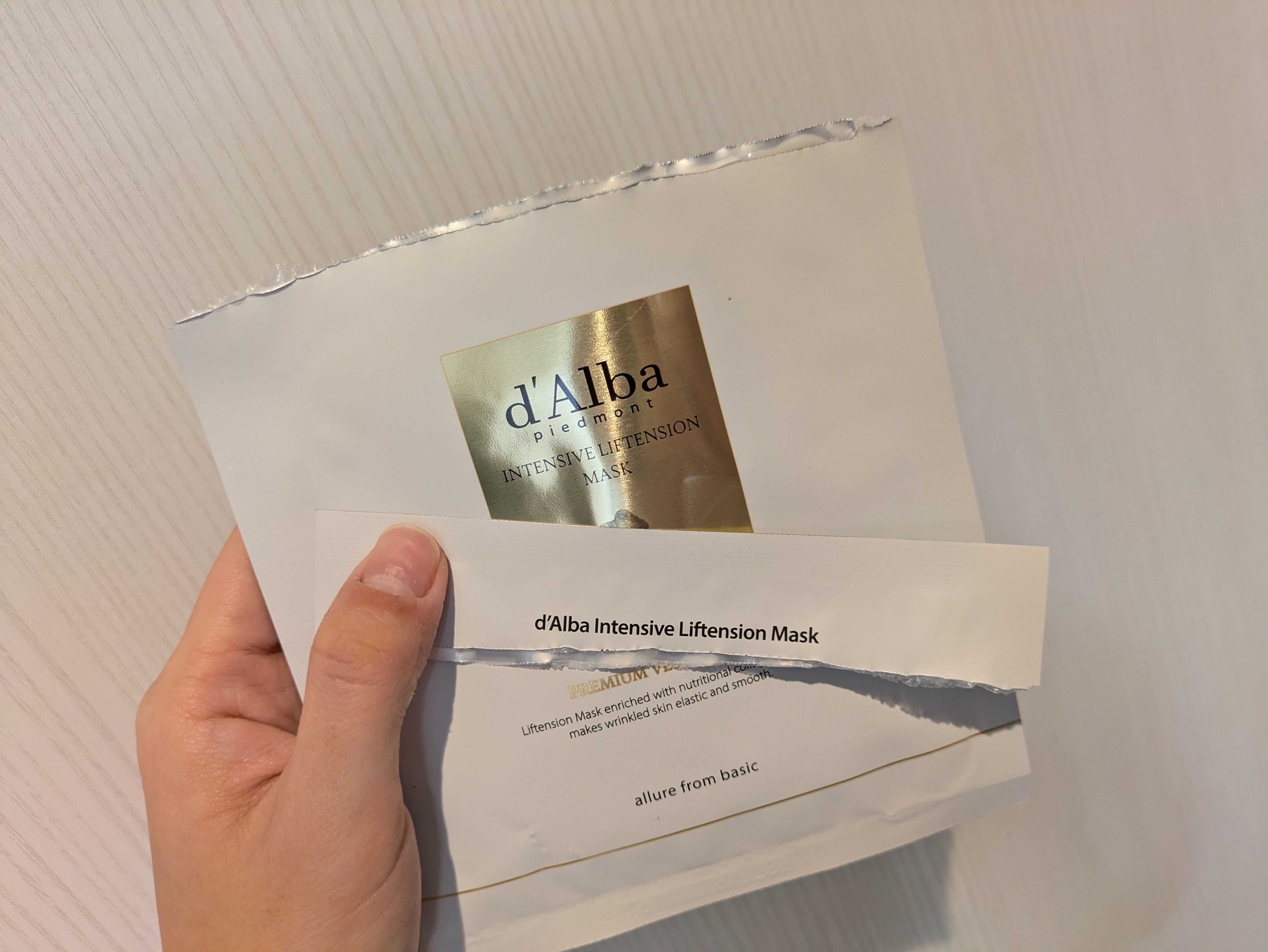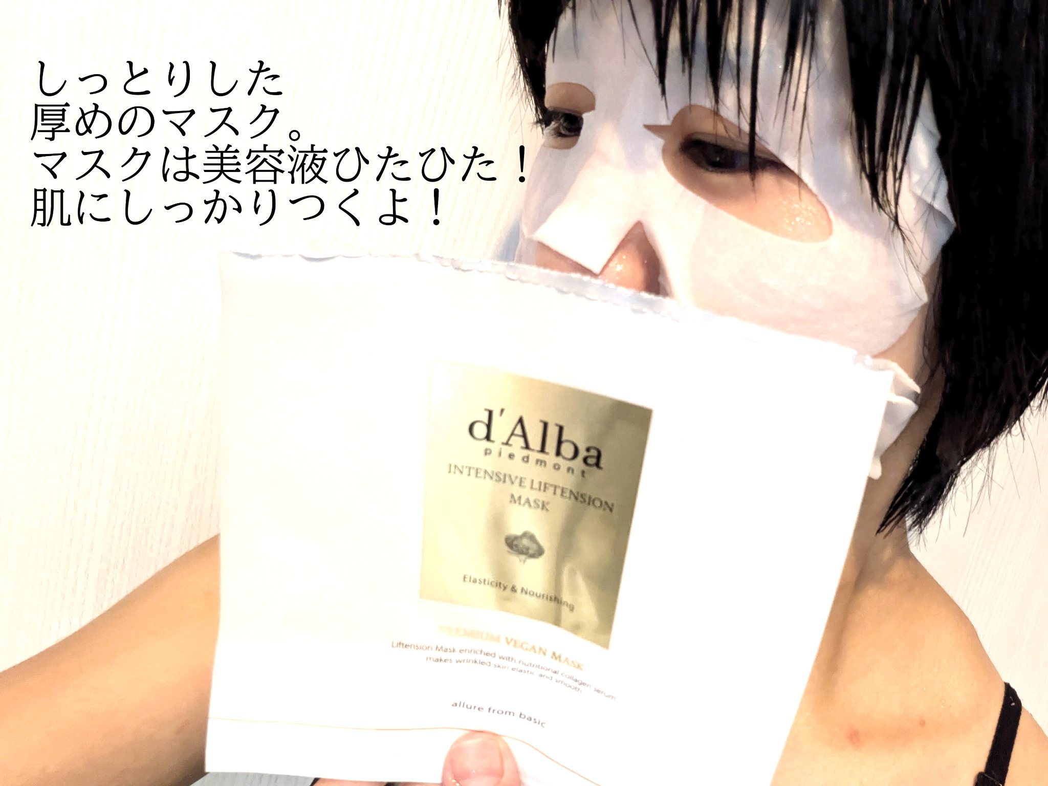 ダルバと言えばミスト! なんだけど、今回はこちら◎ インテンシブリフテンションマスク このマスクは白濁した液でした!!!この液は濃縮乳液なんだって〜!まじでしっとり。 頬の部分が開裂していて顎から頬にかけての皮膚をぎゅーっと上に持ち上げてくれるよ☺🤍