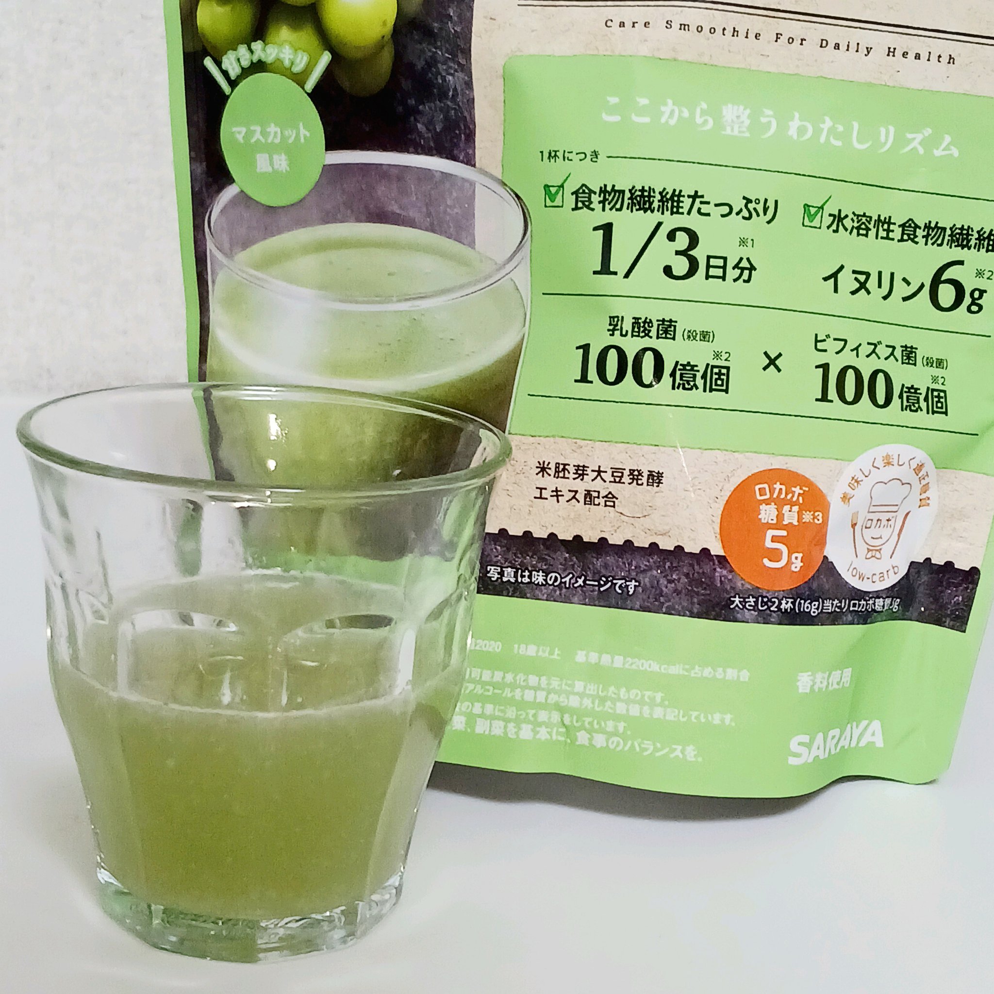 欲しい栄養を1杯にギュッとブレンド‼️ 9種の果物&野菜🍎🍊🥕 マスカットジュースみたいで癖が無く サッパリしていて美味しいです🙈 飲み易いので栄養補給も出来て 満腹感も感じるのでこれなら続きそうです❗️