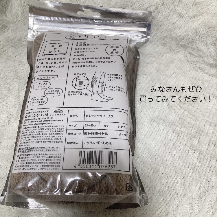 | 結構厚みがあってハイソックス位の長さがあるのでじんわりとても温かいです! | 詳細を見る | |