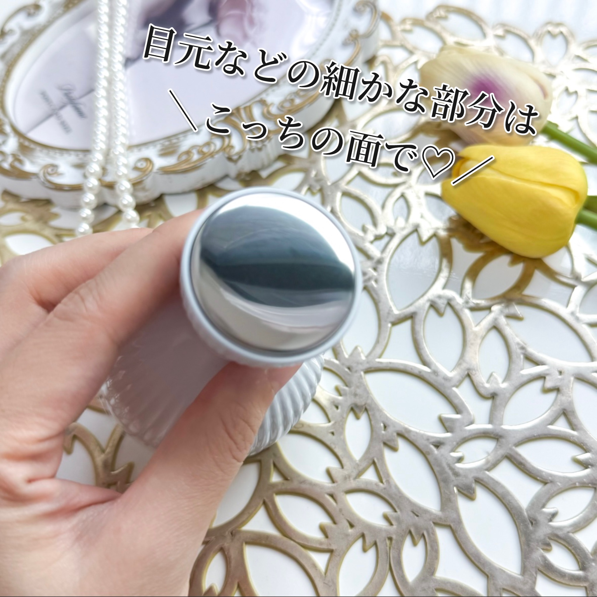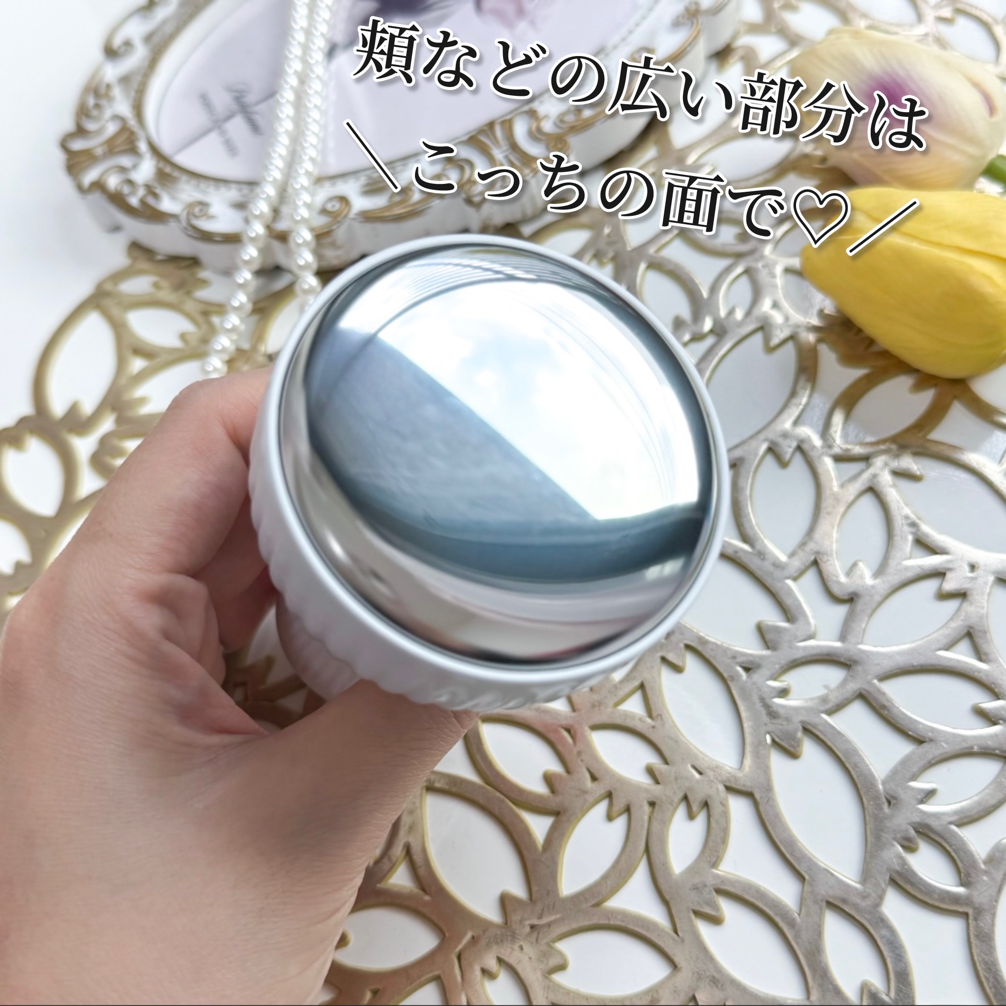 冷蔵庫で冷やすとブルーに変化するから使うタイミングがわかりやすい◎ 夏は冷凍庫で冷え冷えにするのもおすすめ🫶 ひんやり気持ちよくて、スキンケアの仲間入り😍 トナーパッドやフェイスマスクなどの上から使うと更に気持ちよくケアできておすすめだよ☝️✨ ひょうたん型で握りやすくて、大きい面と小さい面を部位によって使い分けできちゃう!
