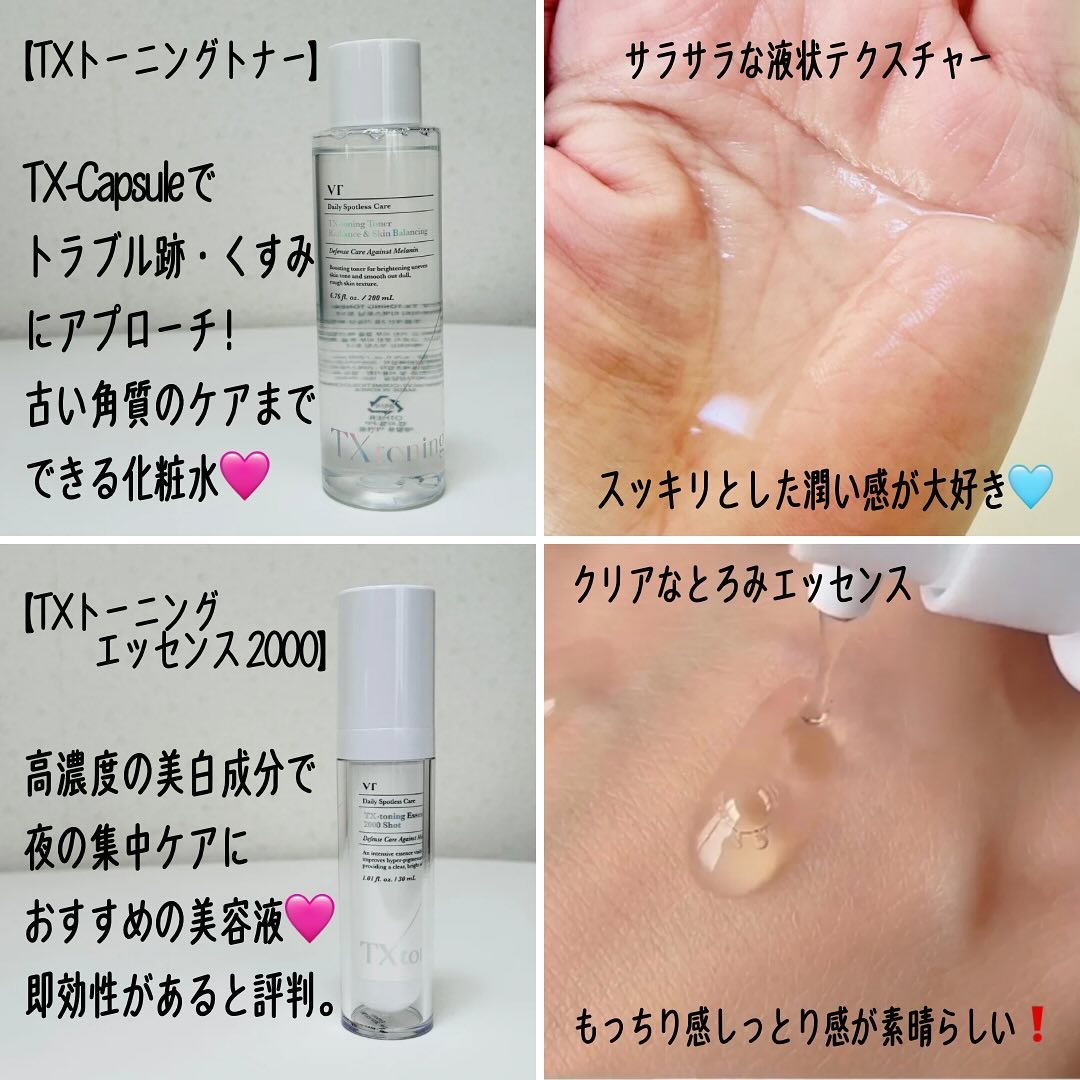 VT史上初!メガ割最大お得セットが登場したよ 売り切れる前にチェックしてみてね 話題の色素沈着ケア!TXトーニング4選に加えて肌悩みに合わせてエッセンスを選択できる! 敏感肌向けパッチテスト・乳幼児向け使用テスト済み (しかし、個人差があり、肌コンディションによって全ての方に肌荒れが起きないわけではありません。)