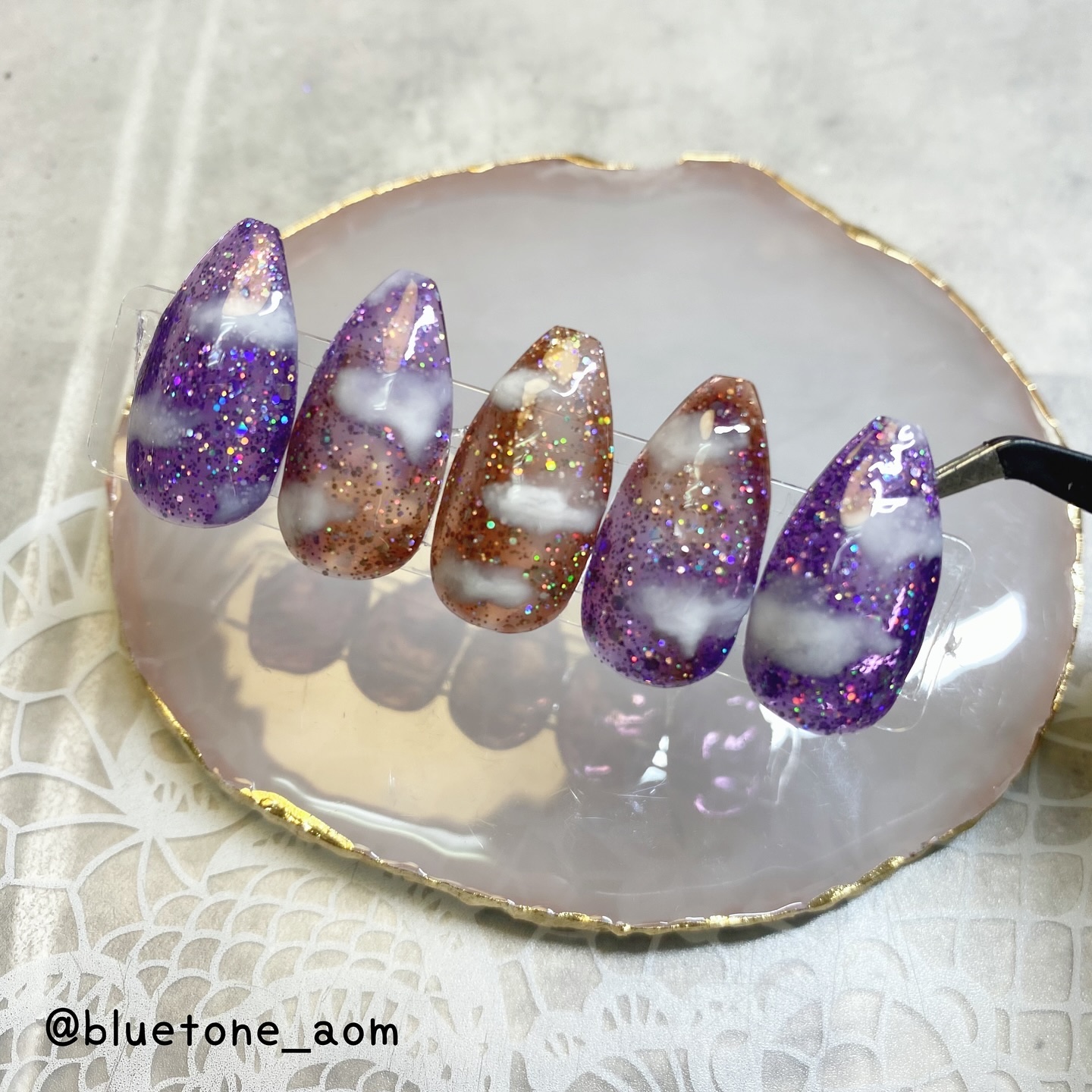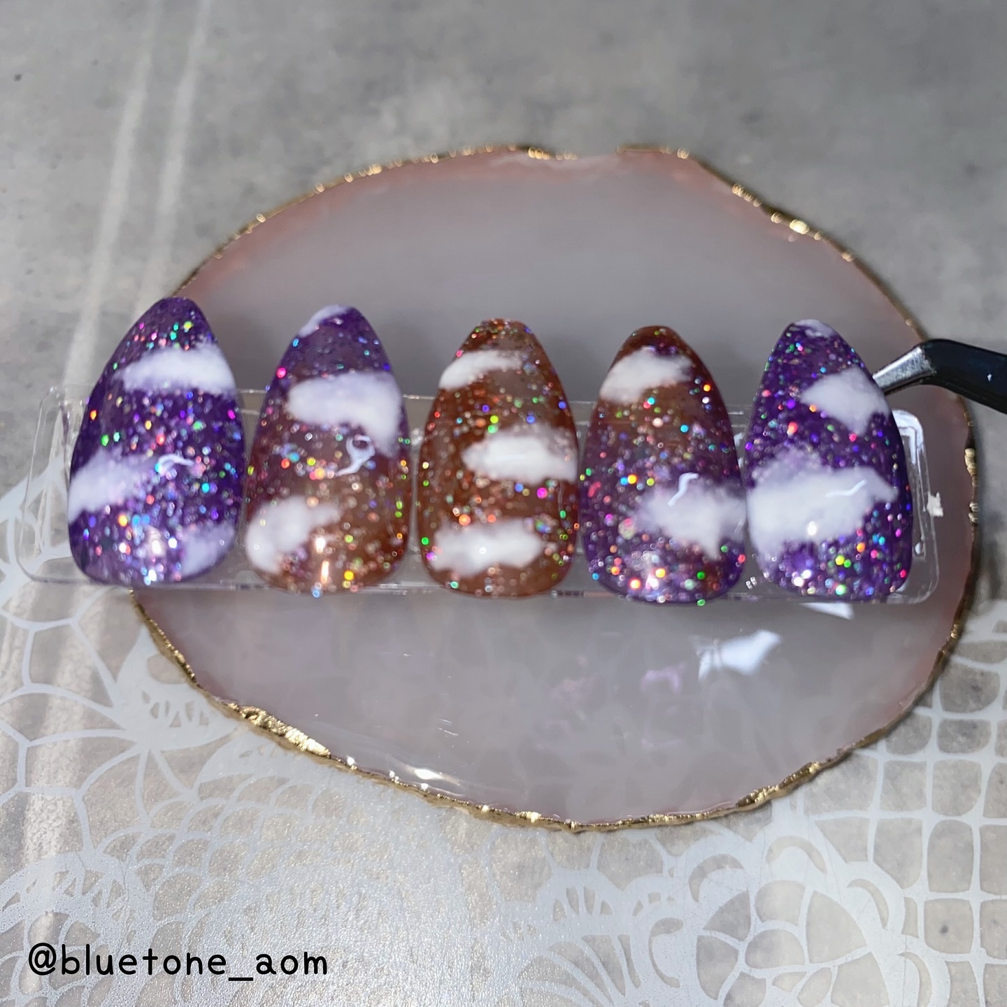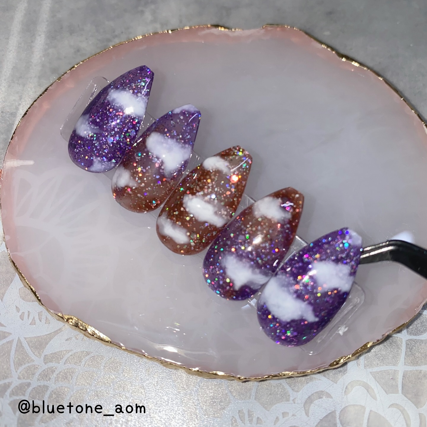 ラメがしっかりしてるし クリアカラーが入ってるから オーロラパウダー無しでも 充分キラキラしました! 反射強めのフィルムなので 実物はもっと うるうるとキラキラが強いです! ビー玉みたい🥺 ネイルシール長持ちさせたいけど ちょっと飽きてきたな〜って時とかに 全然違った印象になるのでオススメです! Seriaのベースジェル 本当にうるうるネイルしやすいので オススメしたい🙆♀️