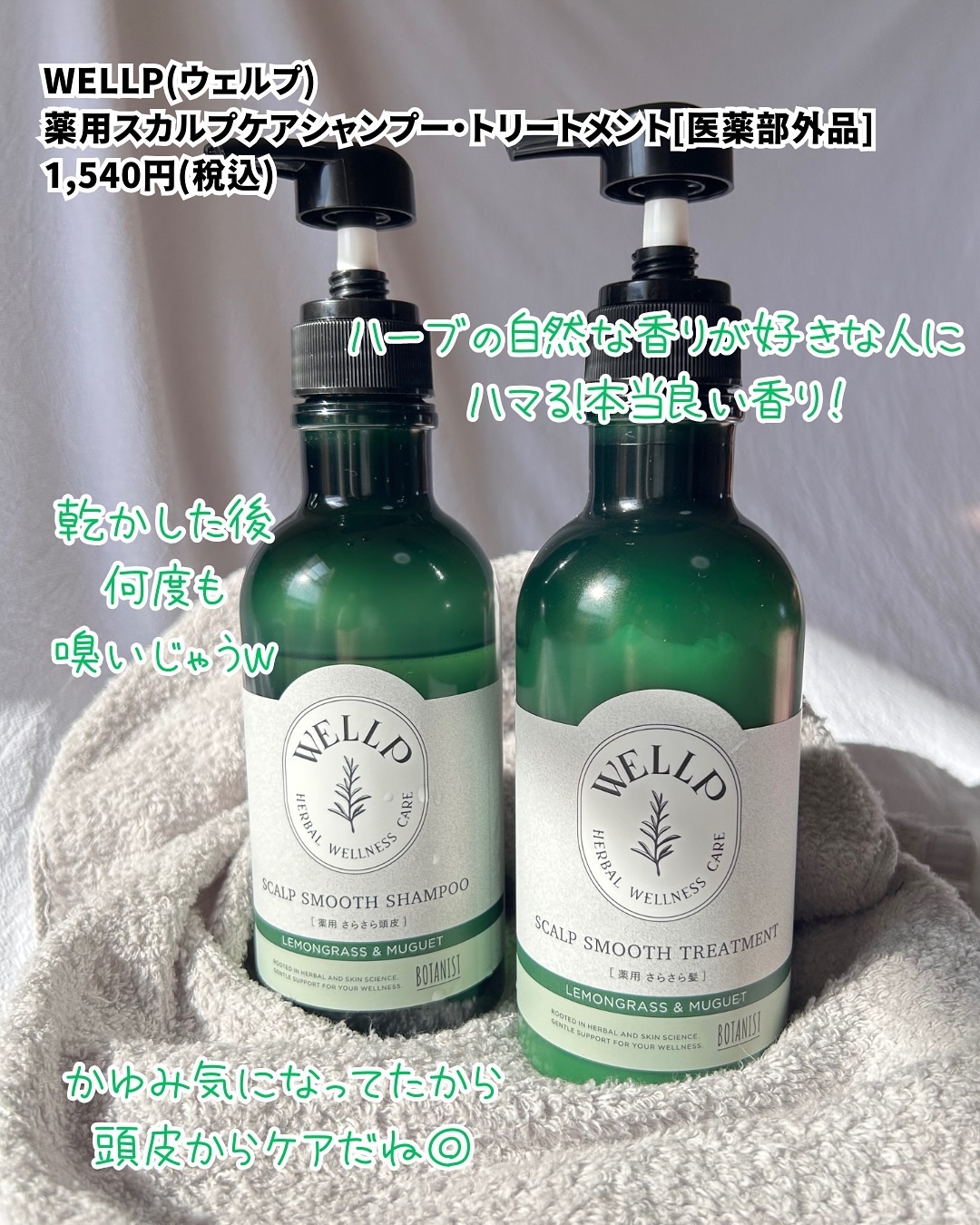 BOTANISTのサブブランドとして誕生した WELLP🌿 ハーブ×皮膚科学処方の新しいスカルプケア 乾燥によるフケ・かゆみを防ぎ 健やかな頭皮環境に整え、なめらかにまとまる髪へ✨ シャンプー&トリートメントは、ラベンダー&ウッディーの香り🪻 高級感のある爽やかな香りでスッキリし、なめらかに仕上がります✨