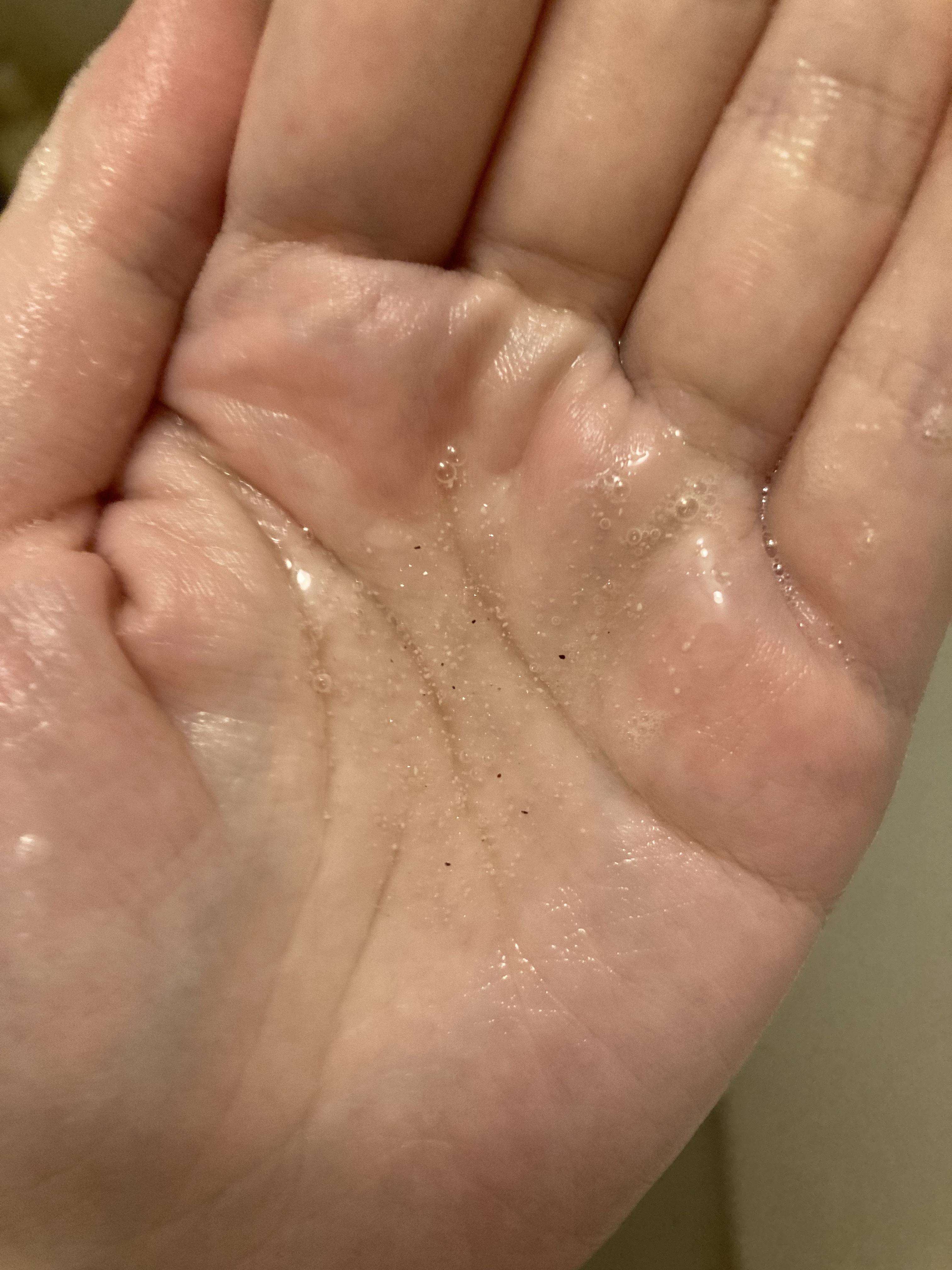 キラッキラでお風呂が映え空間になる スクラブ×ボディウォッシュ🧖🏻♀️🩵 やさしめの粒だから使いやすいしボディウォッシュとしても泡立ち良くて🙆🏻♀️ お花系のやさしくてお上品な香りだったよ🌷 お風呂上がりもふわっと香って癒し🫶🏻