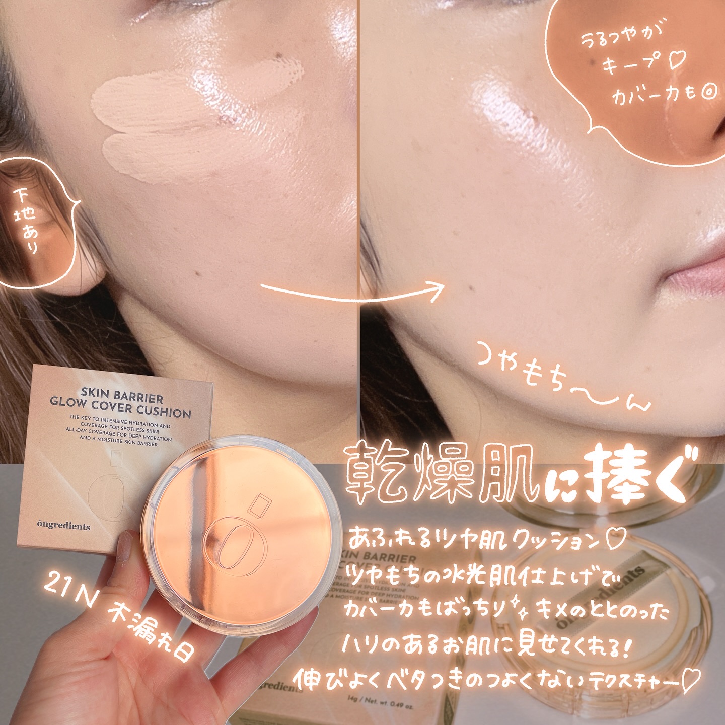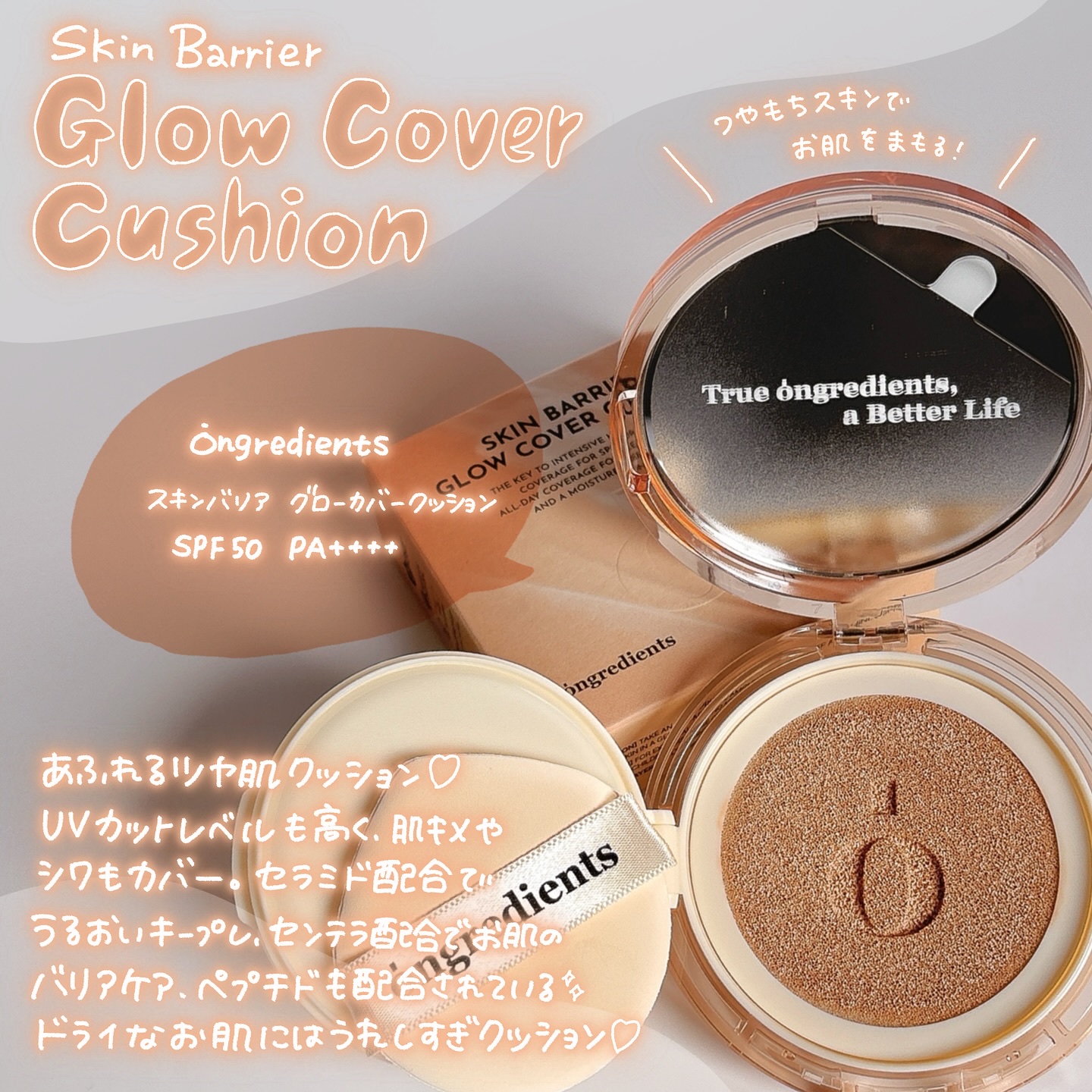 韓国のメイクサロンアイテムで有名なスキンケアブランドオングリディエンツ唯一のメイクアイテムONGREDIENTS@ongredientsjpSKINBARRIERGLOWCOVERCUSHION🕰️50時間の水分・光彩・カーバー持続力を持った...