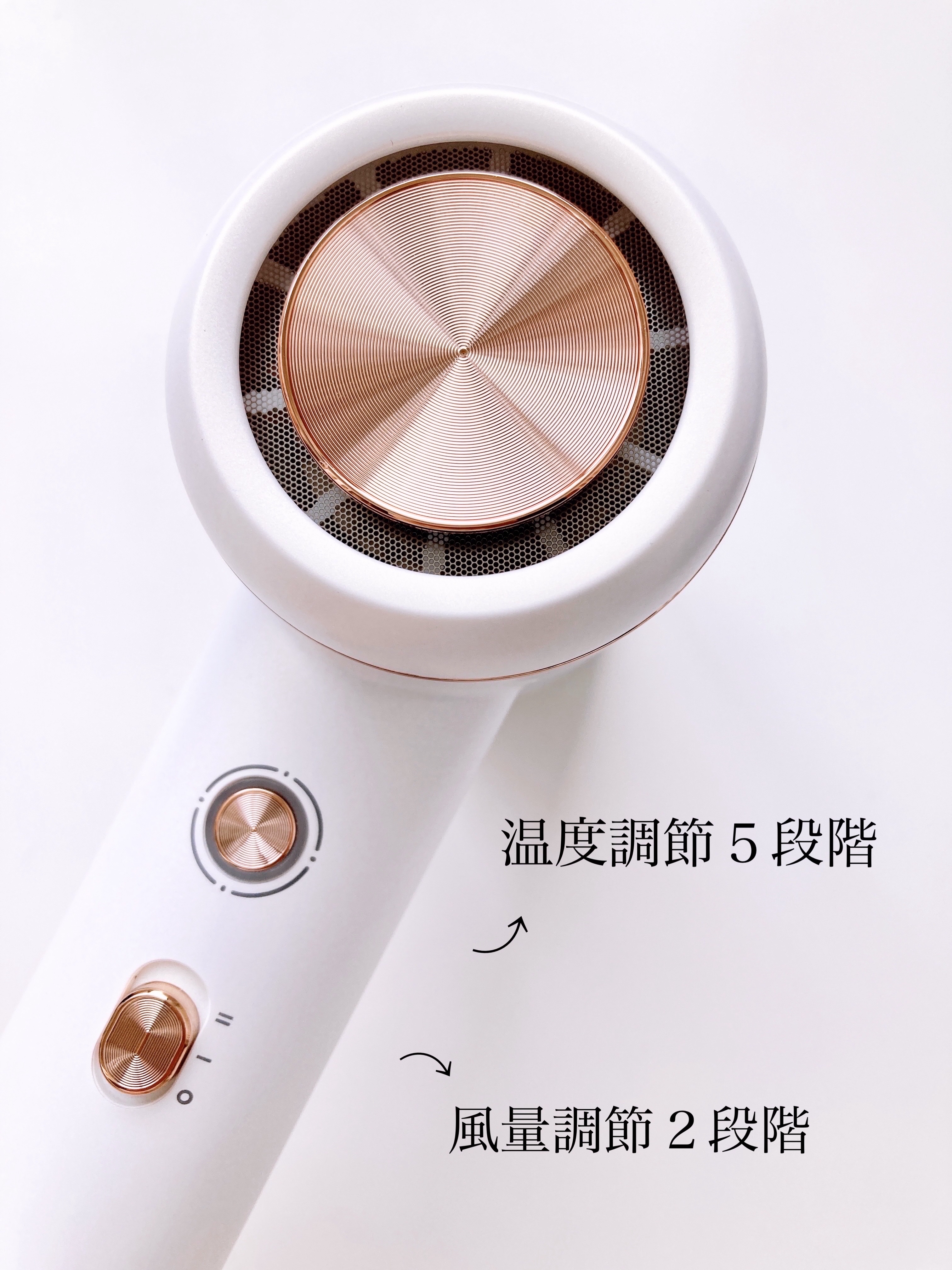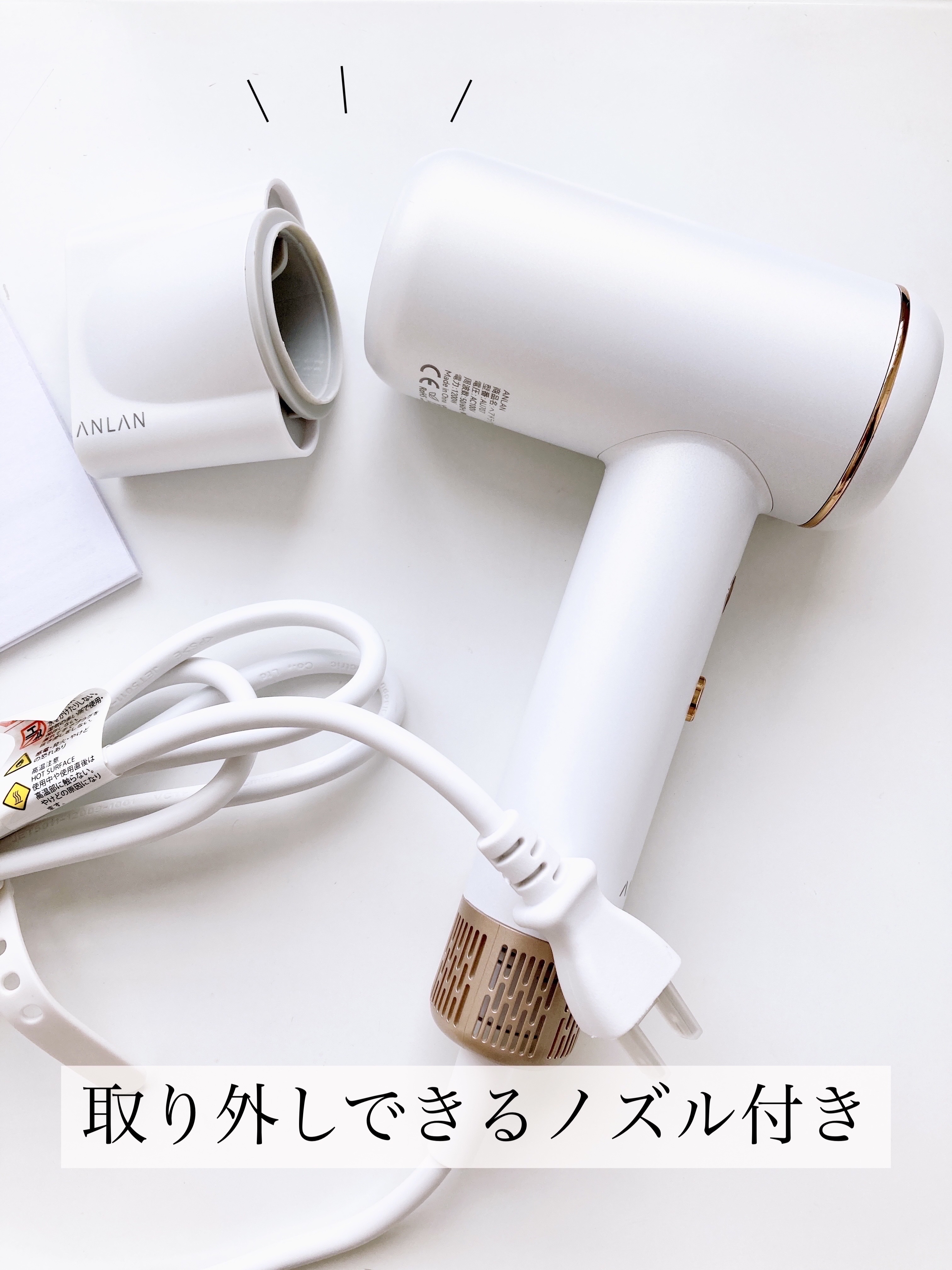 ANLANダブルケアドライヤー。4m³/minの大風量で速乾を実現し熱に頼らない優しい設計。美人百花でも掲載中🌸 マットホワイト✖️ゴールドで上品な本体✨ちゃんとコードもホワイトなので生活感をおさえられそう✨ 2億マイナスイオン、髪と頭皮のダブルケアと色々良いことたくさん👍