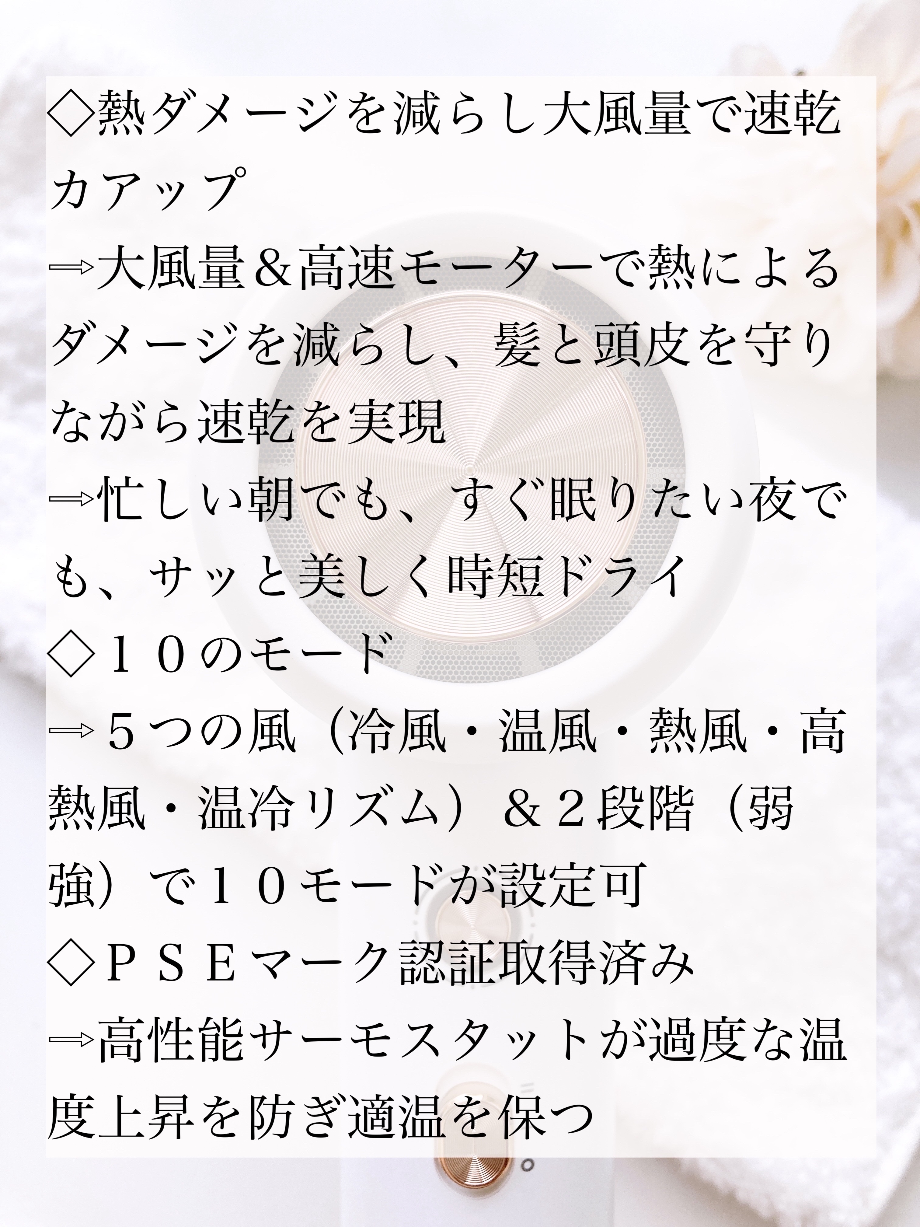 | ヘアケアグッズランキング第59位 | ドライヤーは温風、冷風ともに風も強く、 時短したい方や乾かす時間が面倒な方におすすめ | 詳細を見る |