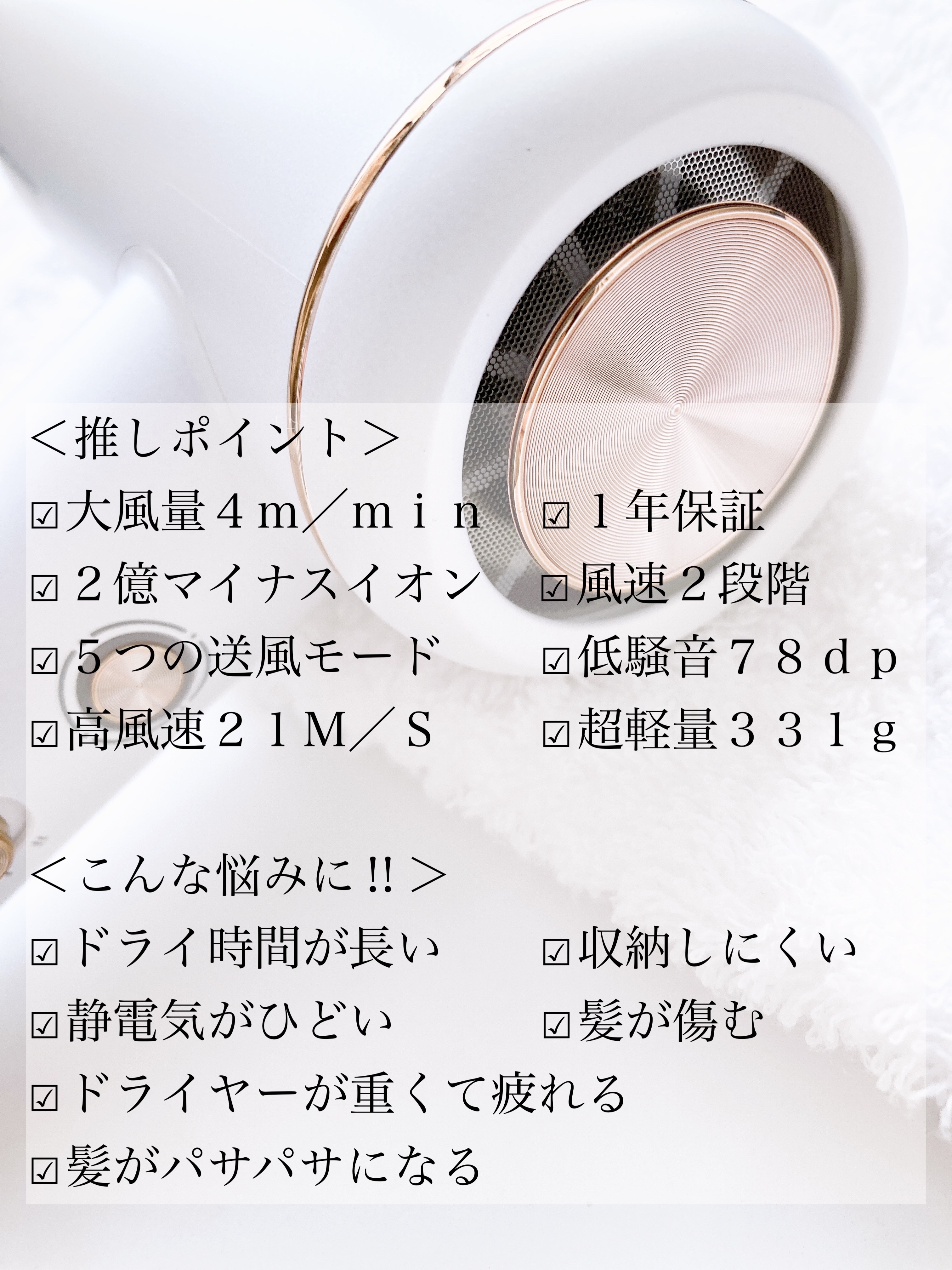 | ドライヤーランキング第36位 | 軽くてめっちゃ使いやすい! 重さはわずか306gでコンパクトなので お部屋にも馴染むし邪魔じゃない🥹💕 | 詳細を見る | |