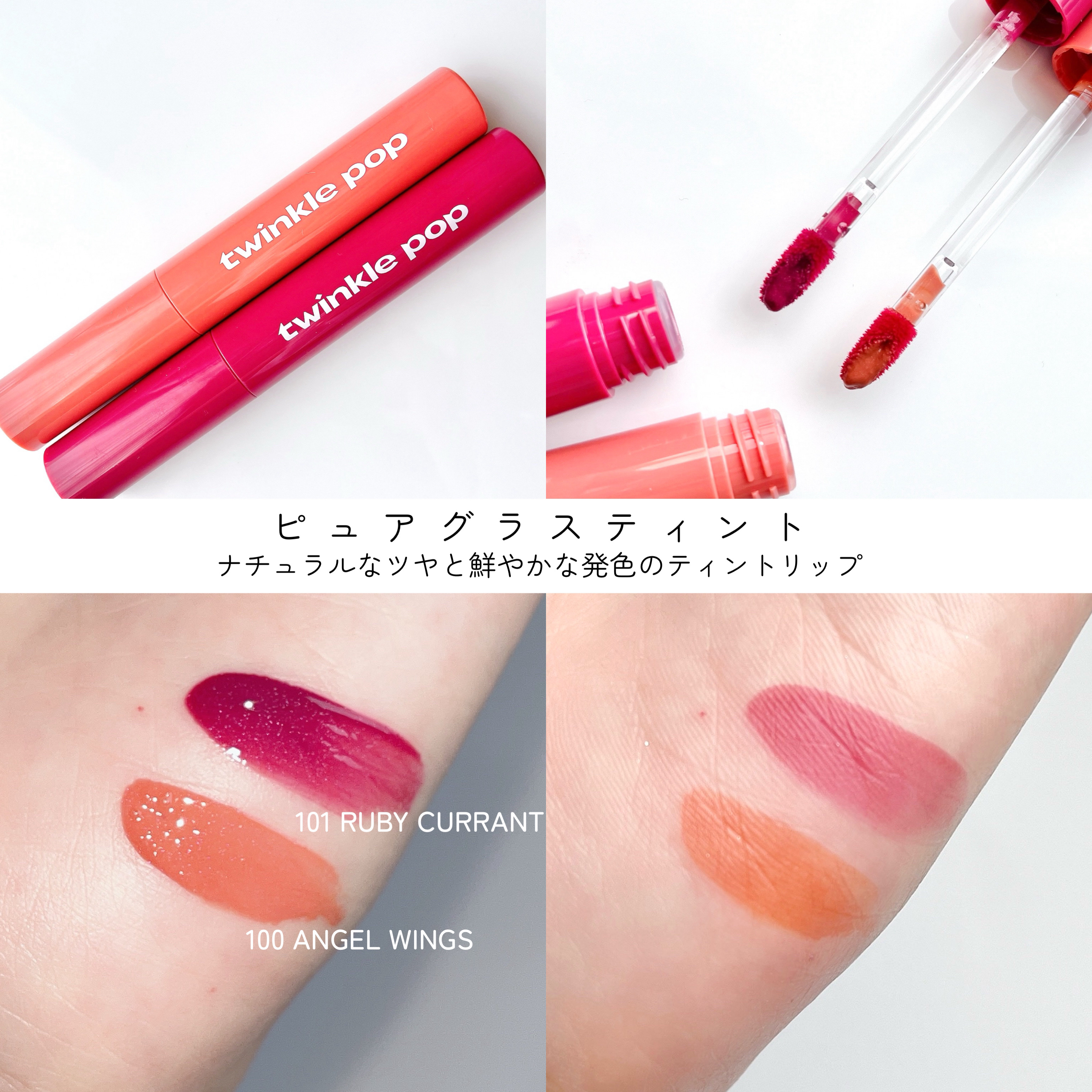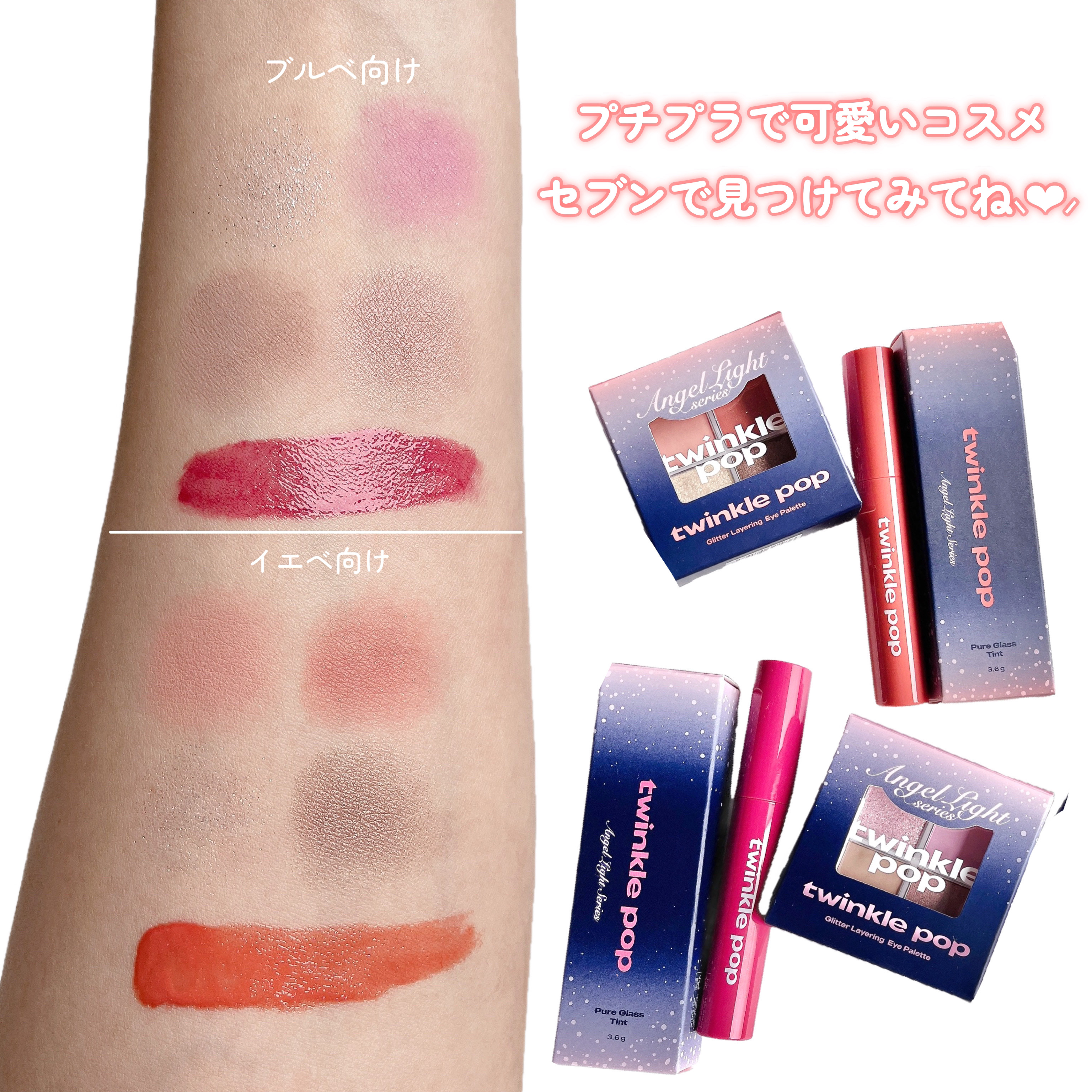 グリッターレイヤリングアイパレット 2種 / 各1,397円 (税込) 100 ANGEL WINGS 101 DREAMY BELL アイシャドウは見た目より、淡めの発色なのでカラーが苦手な方でも挑戦しやすいかと思います✨ 持ちが良くて、すぐティッシュオフしても色持ち抜群でした。唇でも同じでした🥺!