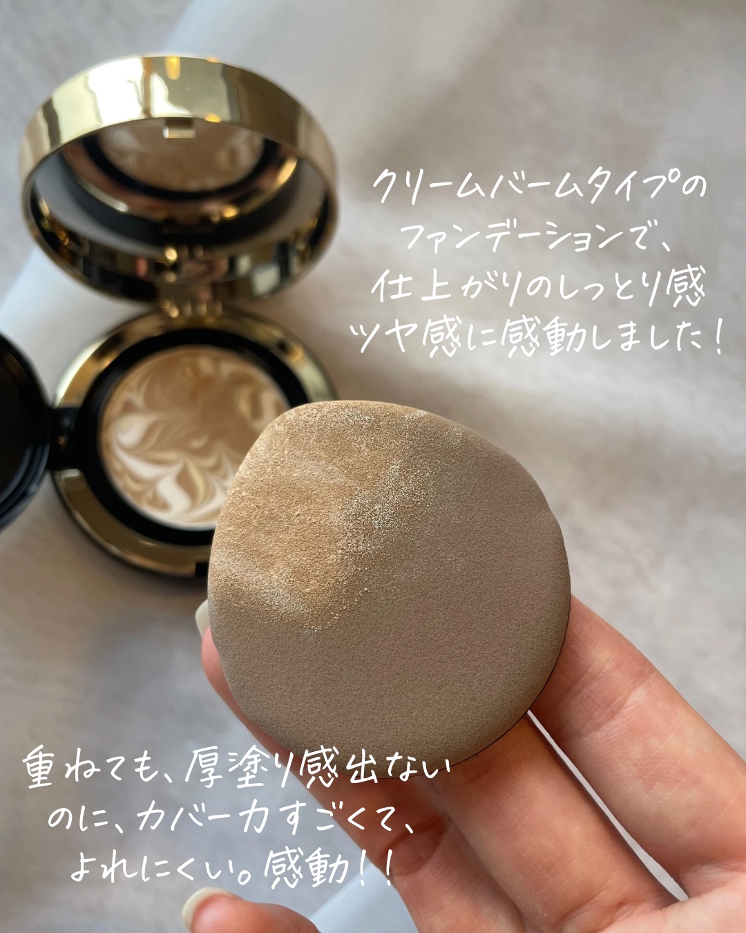 これ一品でUVケア(SPF50+・PA++++)・化粧下地・ファンデの時短! 保湿として美容成分を71%贅沢配合した、しっとり保湿感あふれるクリームバームファンデーション✨ 自然にカバー&メイクアップ効果によるトーンアップが叶ってこれ良い〜!