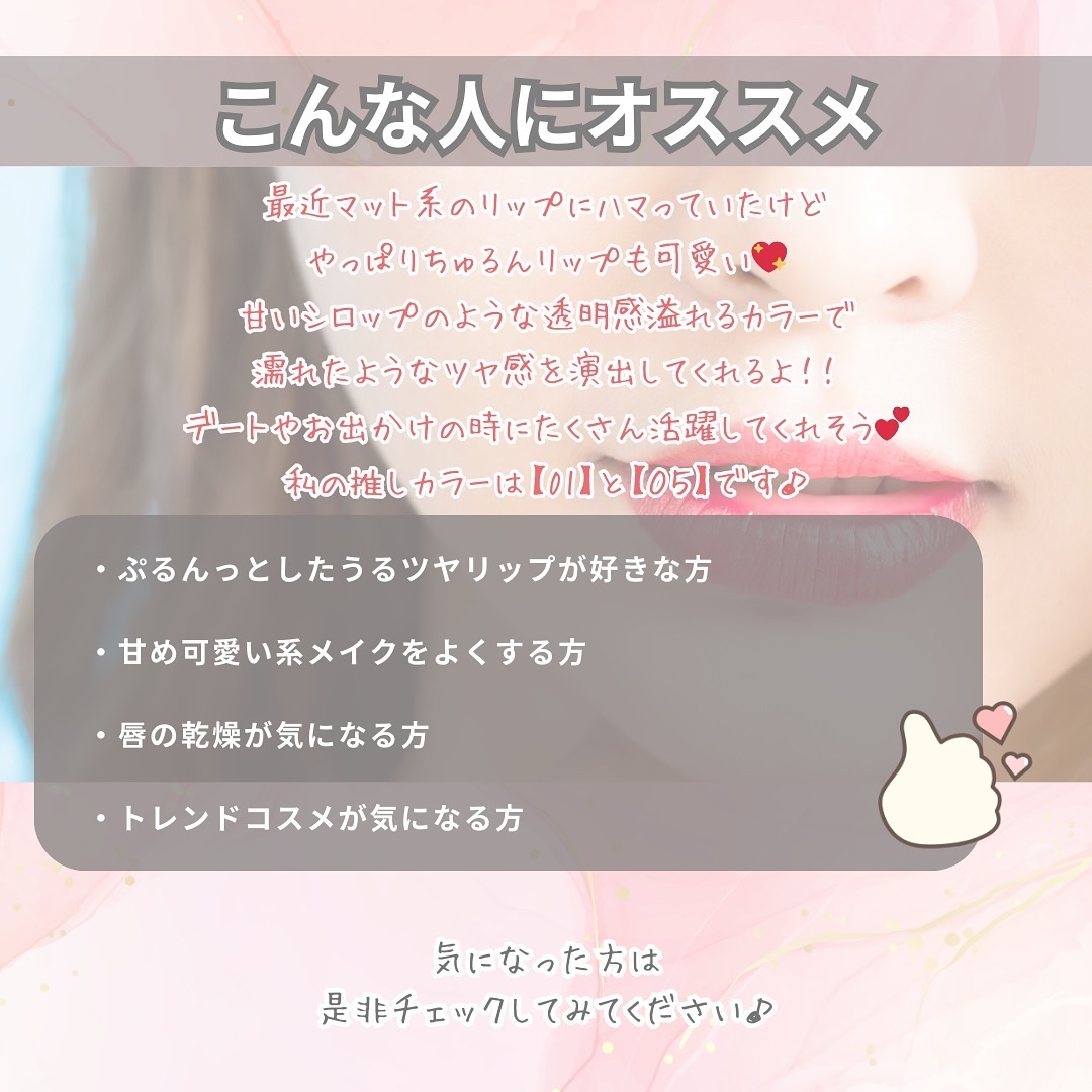 | 落ちづらいのに艶々✨両方叶えるティント⸜♡⸝ | 詳細を見る |